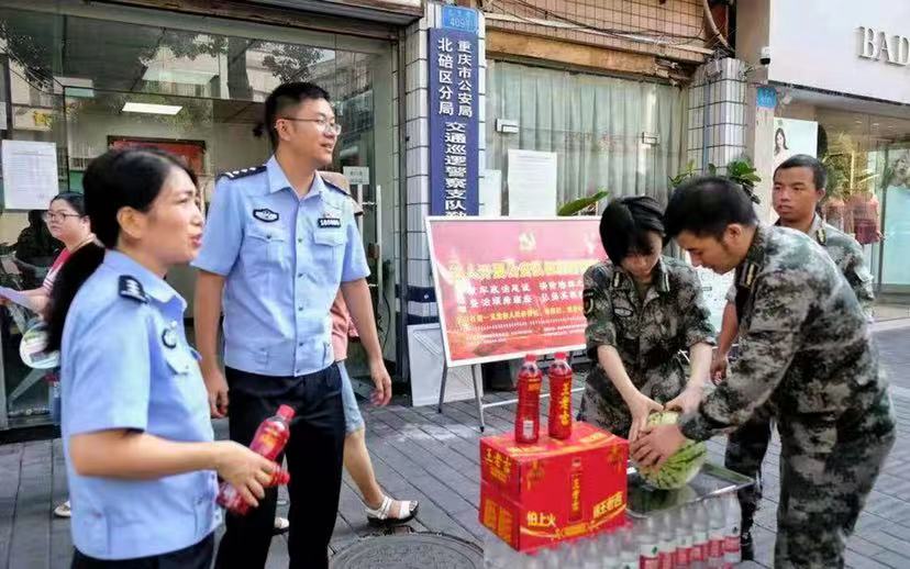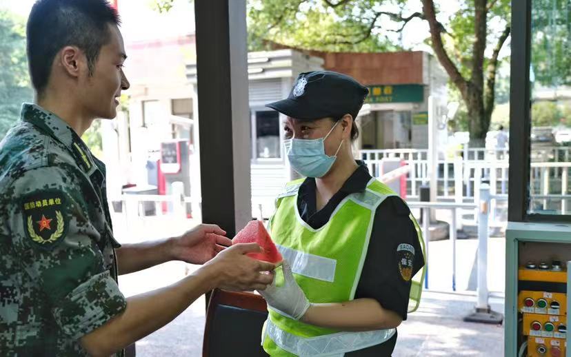 近日,重庆持续高温之下,大学生能做什么?8月4日,作为西南大学大学生国防教育示范团队,西南大学砺剑班同学们精心准备了西瓜、凉茶、防暑药品,先后到北温泉街道环卫垃圾中转站、交巡警大队交通秩序勤务点、金刀峡镇森林防火检查站、学校门岗和集中健康观察点等地方,为辛勤工作在一线的劳动者们送去清凉。暖心之举受到重庆卫视、重庆之声、华龙网、上游新闻等多家媒体广泛关注。