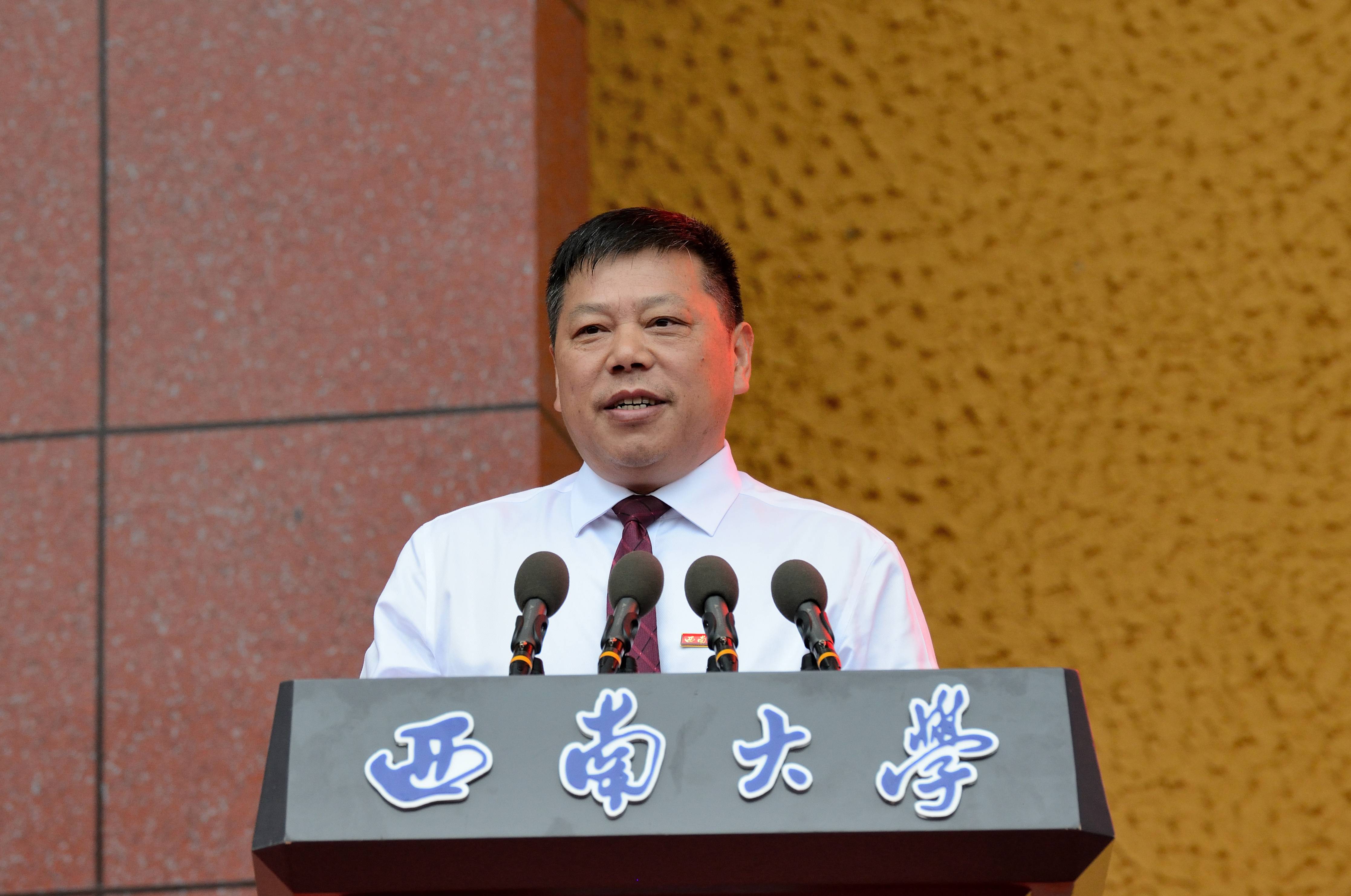 张卫国代表学校向承训部队——武警重庆市总队机动支队的辛勤付出表示感谢并赠送锦旗,对同学们在军训中取得的优异成绩表示热烈祝贺。