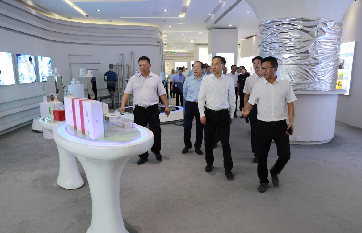 在北碚国家大学科技园,陈金山对科创工作与企业合作表示关注,讲解员向陈金山一行展示科创成果,并介绍目前已有300多家企业完成建立合作关系。陈金山体验了“中华味道”系列香氛的几款特色产品“腊梅香氛”“芙蓉香氛”,他表示希望北碚常见的腊梅等成为产业的同时也可以走向海外。