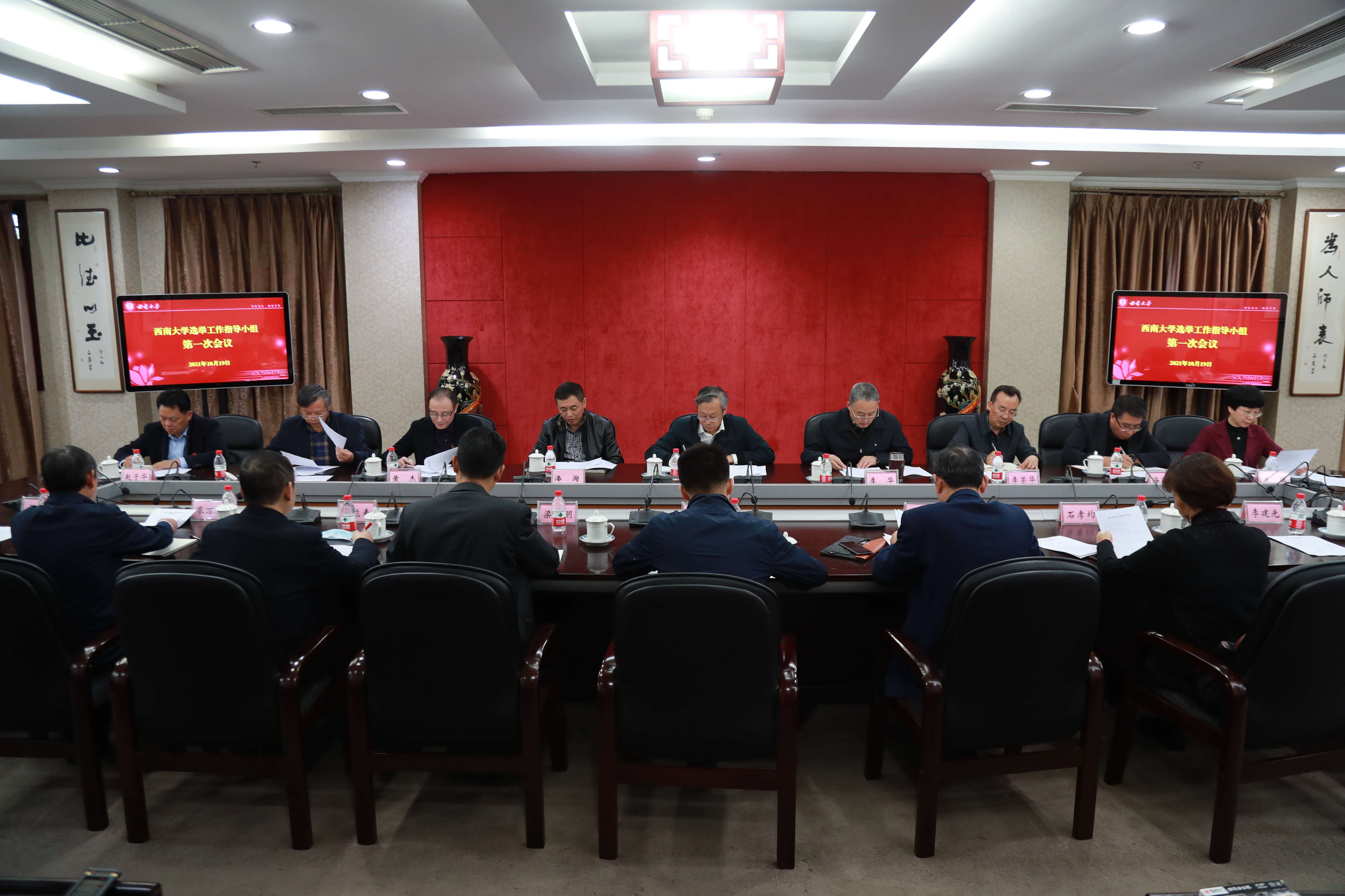 10月19号,学校在行署楼召开西南大学选举工作指导小组第一次会议。学校党委副书记安春元,党委副书记、纪委书记李华,党委副书记潘洵,党委常委、党委宣传部、党委网络工作部部长李荣华出席会议,有关单位负责人参加会议。