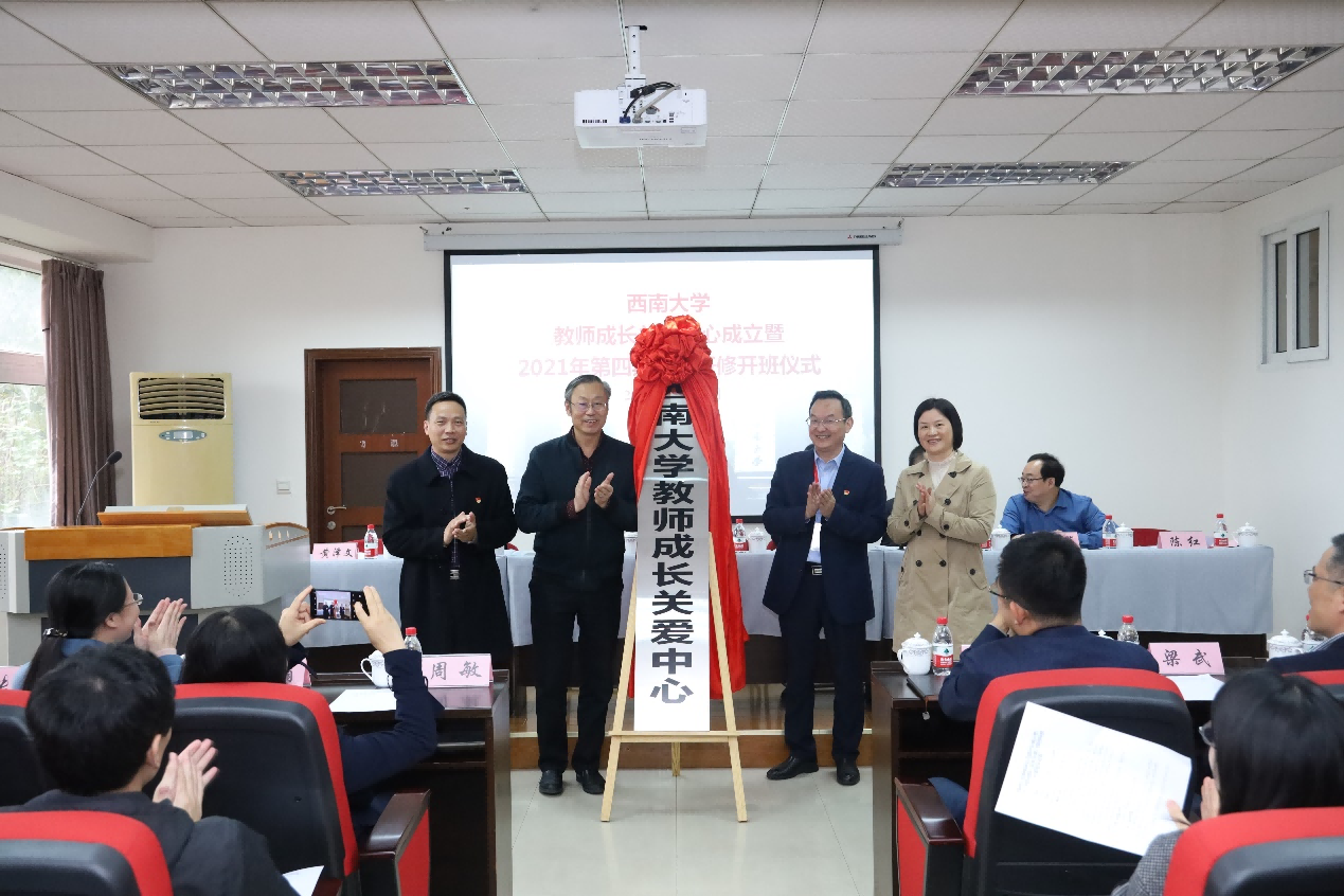 10月25日下午,学校教师成长关爱中心成立暨2021年第四期国情研修开班仪式在荟文楼举行。党委副书记安春元出席会议,西南大学教师成长关爱中心成员单位负责人以及参加2021年第四期海外归国教师、优秀青年骨干教师国情研修班的参训教师参加会议,会议由人力资源部党委教师工作部部长王志坚主持。