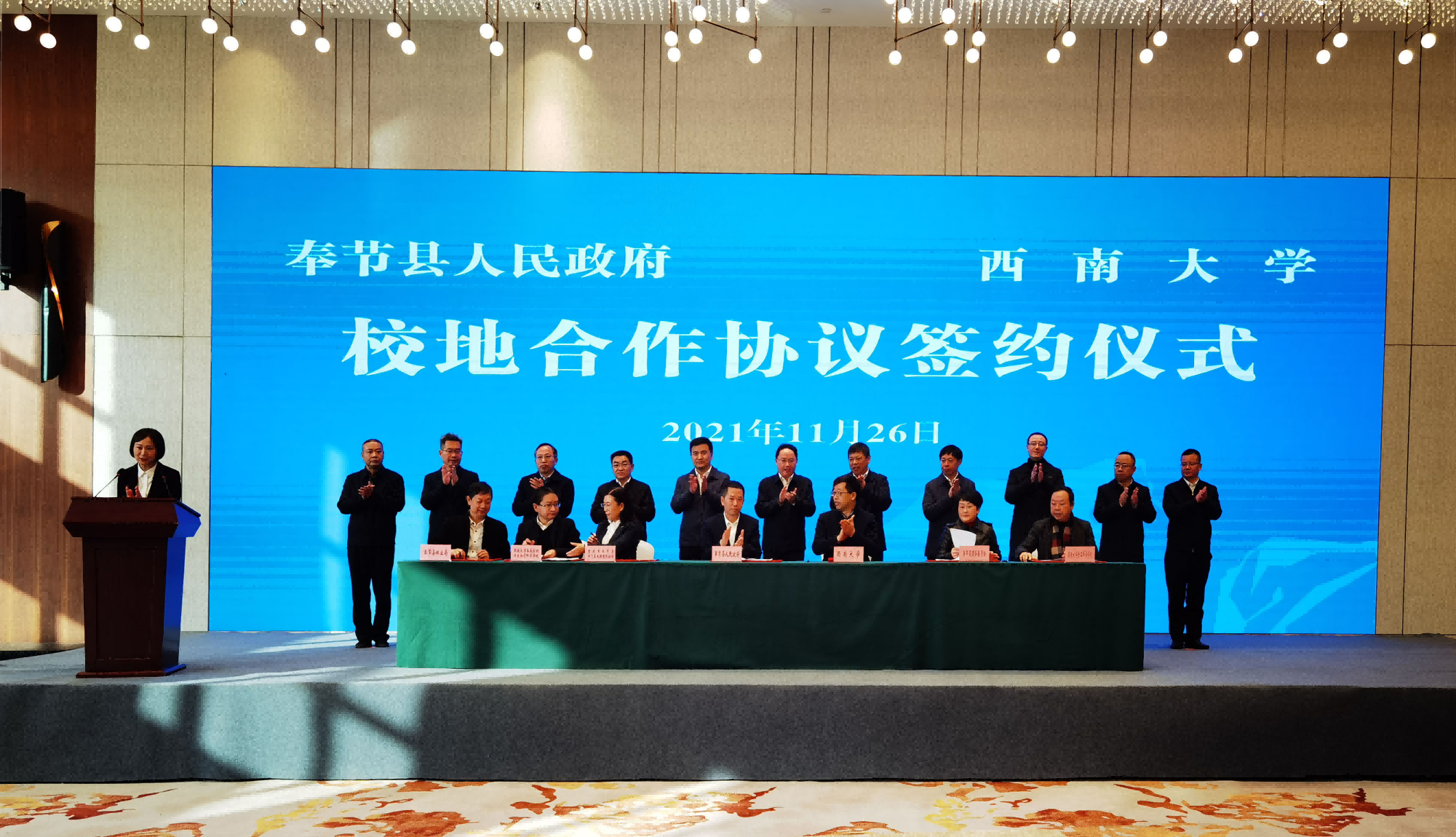 县校双方签署《奉节县人民政府·西南大学校地合作协议》。协议约定,未来5年,奉节县每年统筹安排经费不低于300万元,与学校在科技创新、乡村振兴、基础教育及文化旅游等方面开展深入的合作,赋能奉节乡村振兴,服务重庆“一区两群”区域协调发展。会上启动了三峡美食-奉节腊肉及盬子鸡产品开发与产业化关键技术研究、智能蚕业及配套新技术试验示范、柑橘优新品种引进试验示范等首批合作项目。