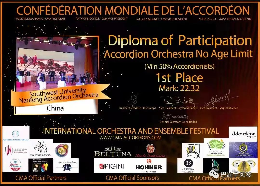 “南风”手风琴乐团由西南大学音乐学院朱春铃教授组建并指导,曾多次参加国内外手风琴专业大赛,表现突出。此次更是通过完美演绎合奏曲目Georgy Sviridov 《The Snowstorm——Troika、Romance》(乔治·斯维里多夫的《暴风雪——三套车、浪漫史》)、协奏曲Michele Mangani(《CONCERTPIECE》片段),获得评委的青睐和认可。