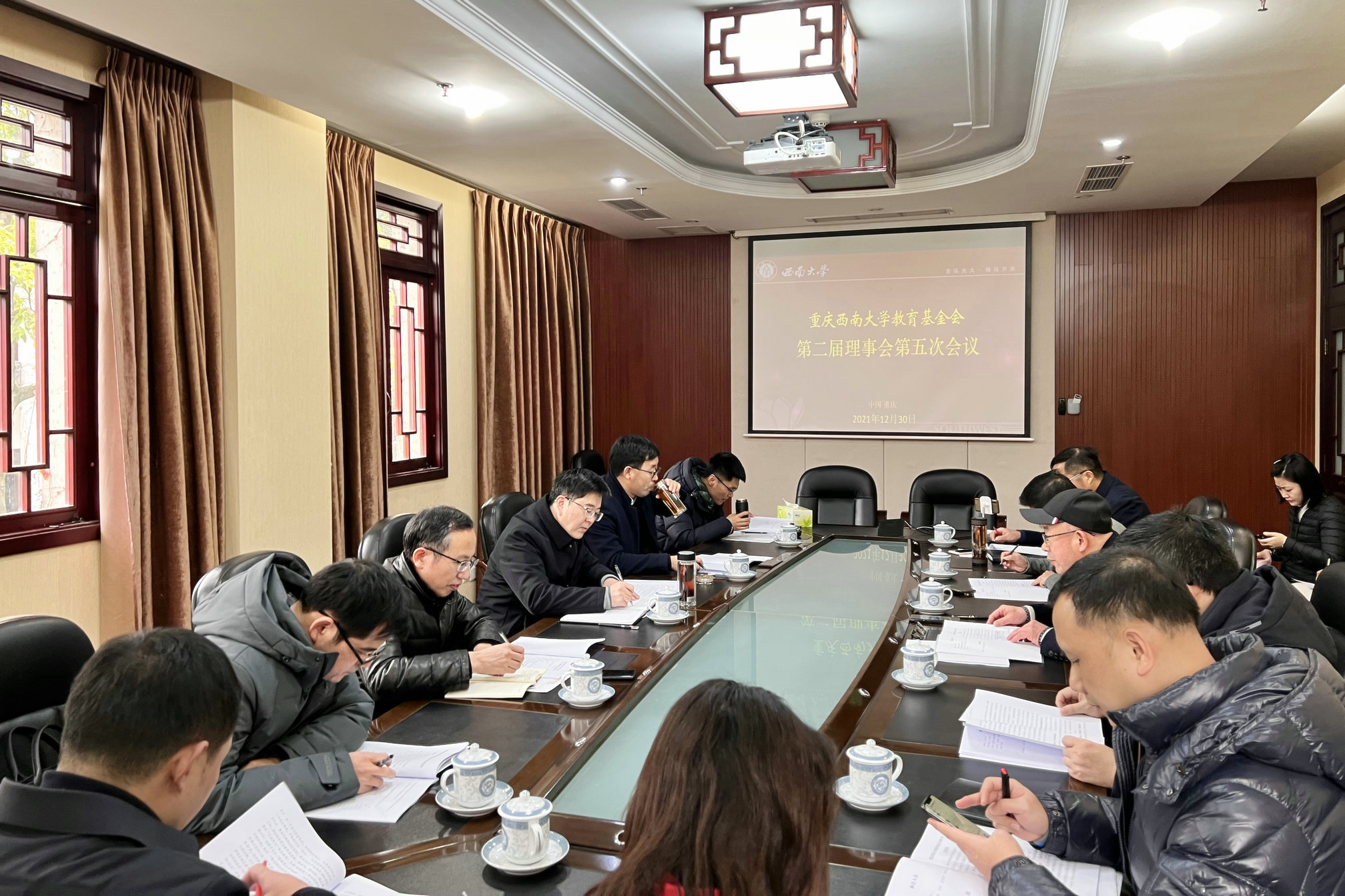 会议审定《重庆西南大学教育基金会章程》的修订以及《关于授权基金会秘书处购买银行结构性存款和稳健性理财产品的议案》《关于购置重庆西南大学教育基金会项目综合管理系统的议案》《关于重庆西南大学教育基金会向西南大学捐赠800万元的议案》。为加强学校对捐赠工作的管理,拓展筹资渠道,调动各单位和教职员工的筹资积极性,会议讨论了《西南大学捐赠工作管理办法》《西南大学捐赠工作奖励办法》,理事们各抒己见,在捐赠项目的设立、捐赠答谢方法、捐赠奖励分配方式等方面提出宝贵意见。