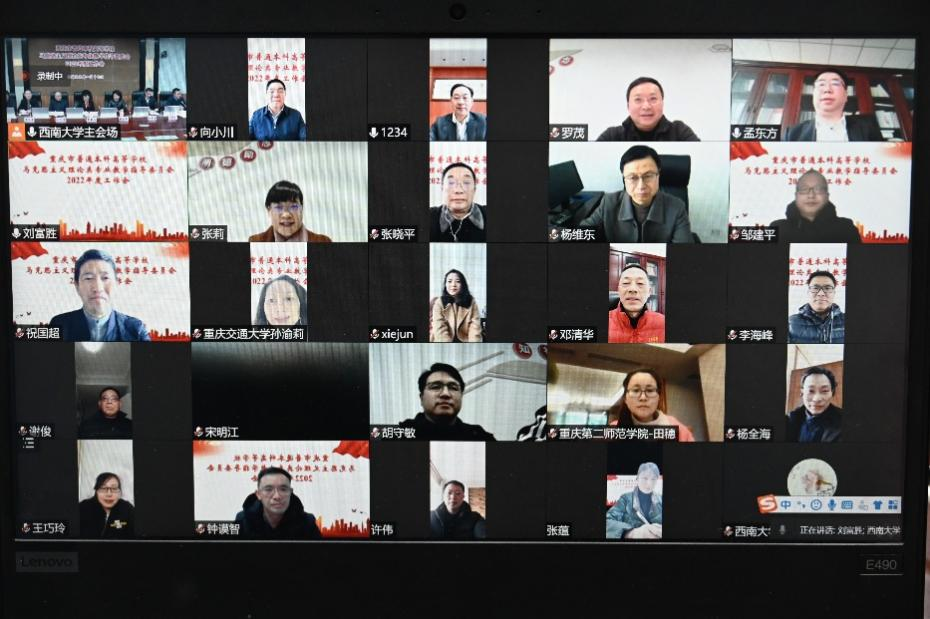 1月17日,重庆市本科高等学校马克思主义理论类专业教学指导委员会成立暨2022年度工作会在学校召开,本次会议以线上线下相结合的方式进行,主会场设在学校马克思主义学院。市教委高教处处长蒋云芳、市高教学会秘书长余志祥、学校专家学者及相关单位负责人等在主会场参会。
