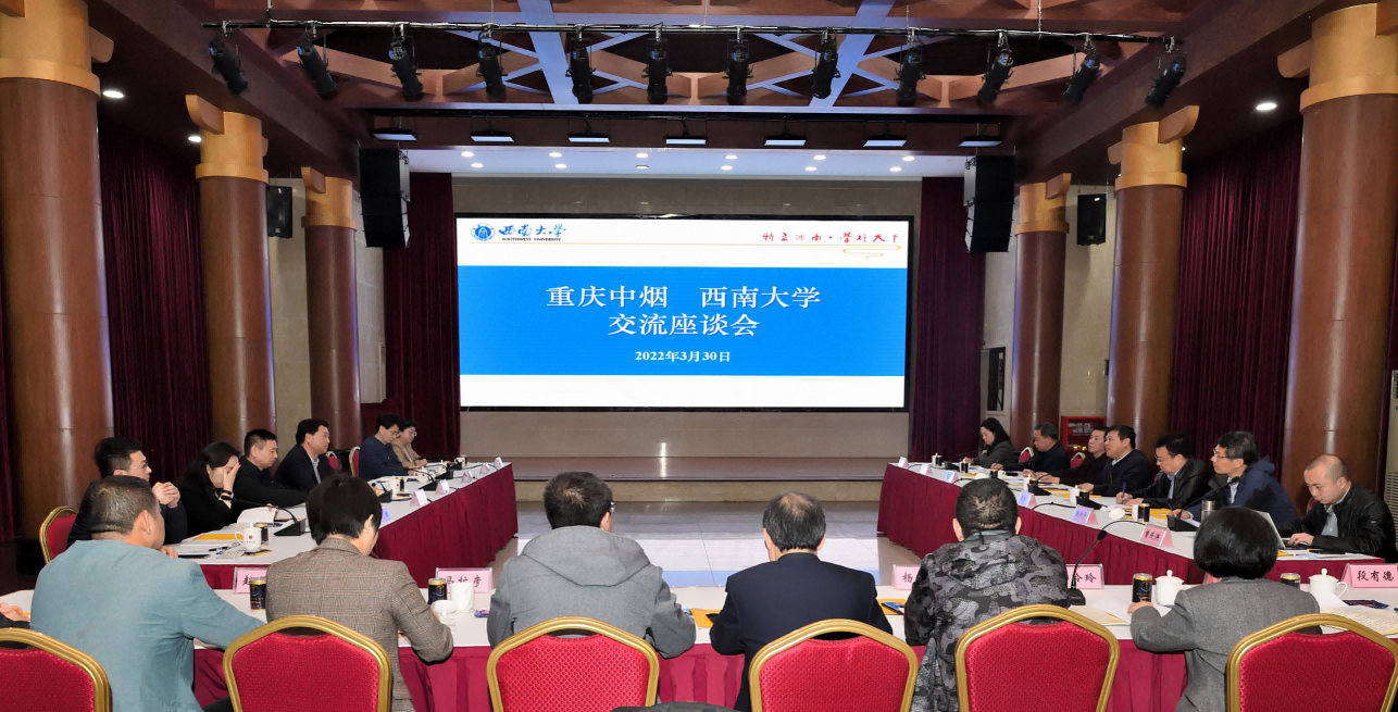 3月30日,重庆中烟工业有限责任公司党组书记、总经理张力一行10人来校洽谈合作,参观校史馆和前沿交叉学科研究院生物学研究中心,在东方红会议厅召开交流座谈会。校长张卫国,副校长王进军出席,党政办公室、人力资源部、科学技术处、国内合作处、招生就业处等单位负责人和相关专家参加座谈。王进军主持会议。