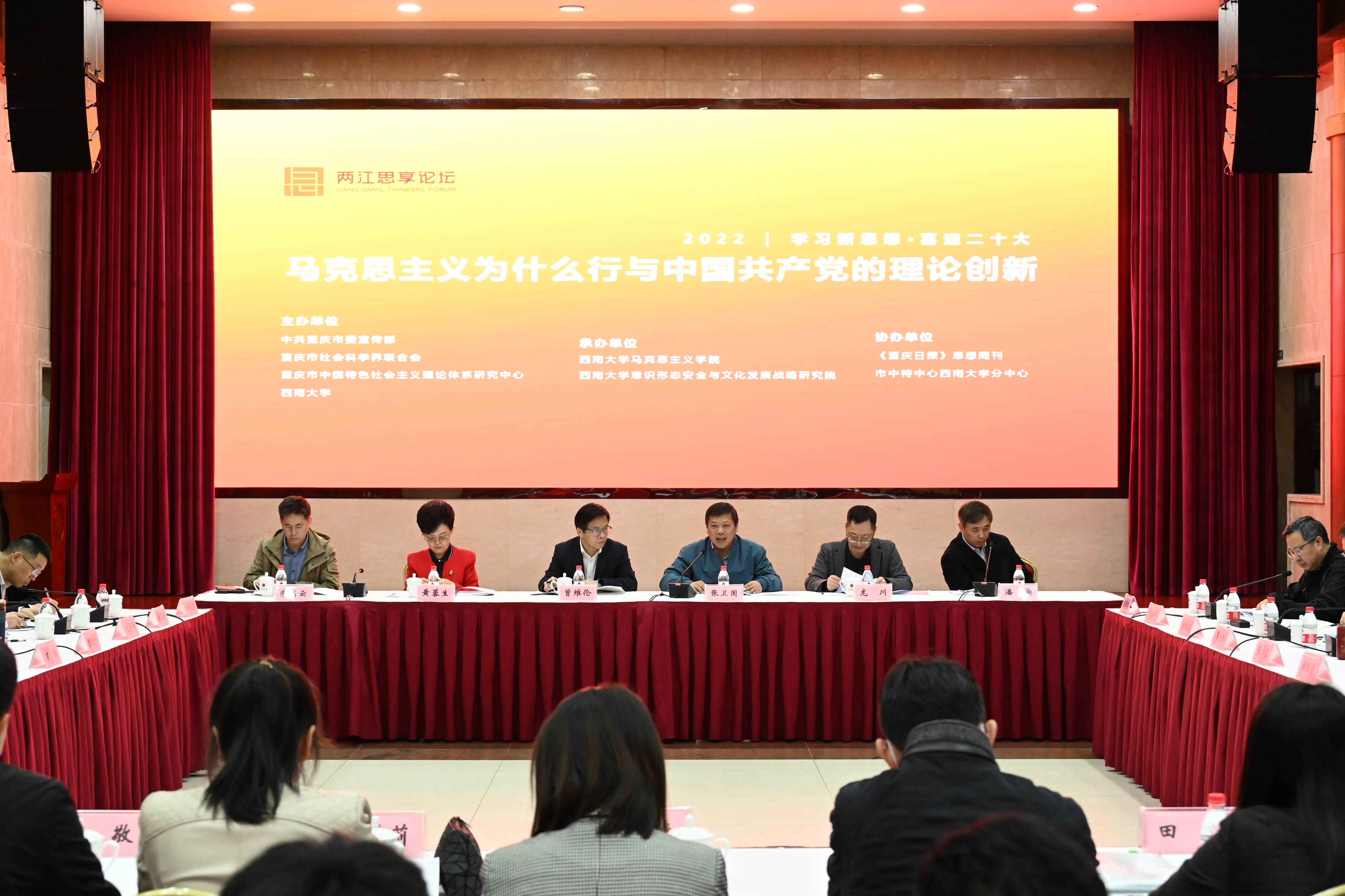 会上,中共重庆市委党史研究室副主任周廷勇,重庆大学马克思主义学院院长张邦辉,西南大学马克思主义学院院长白显良,重庆邮电大学马克思主义学院院长代金平,西南政法大学马克思主义学院院长文学平,重庆工商大学马克思主义学院院长杨维东,重庆交通大学马克思主义学院院长张晓平,重庆社科院哲学与政治学研究所副所长吴大兵、中共重庆市委党校马克思主义学院副院长方旭,四川外国语大学马克思主义学院教授张蕴等专家学者围绕“马克思主义为什么在中国行”“如何推进理论创新”“如何把握新时代党的创新理论”“如何实现‘两个结合’”“如何推进理论武装”等重大问题进行研讨,进一步加深了对“归根结底是因为马克思主义行”深刻内涵的理解。
