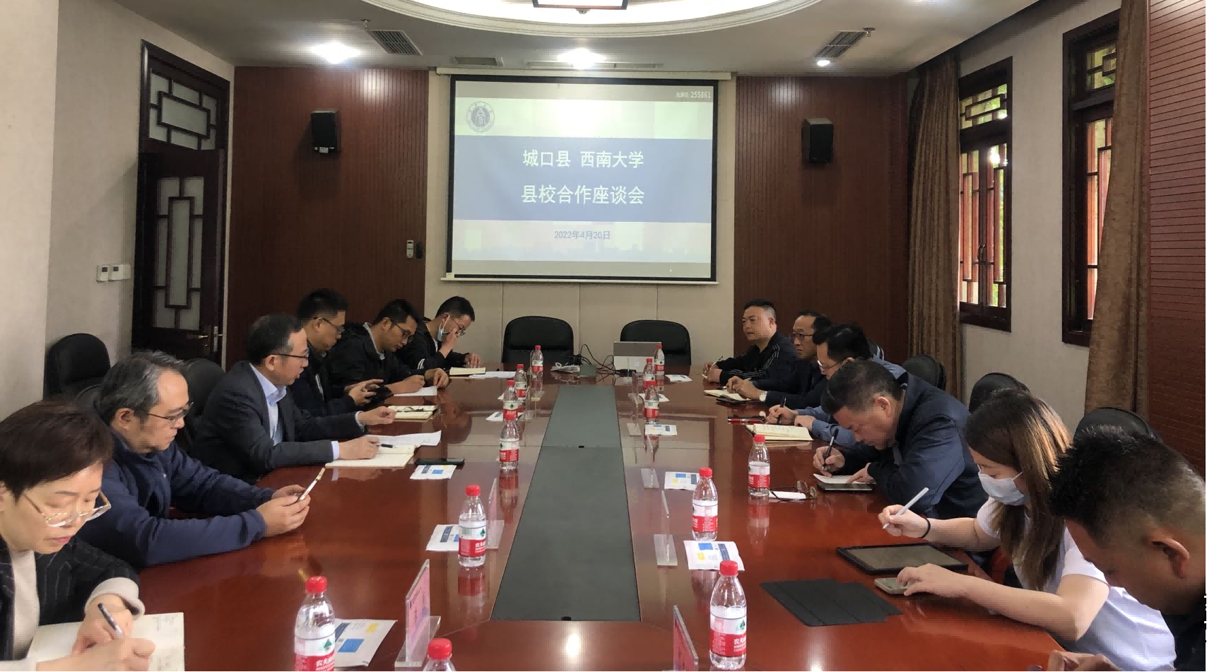 4月20日,城口县委常委、县政府党组成员、县工业园区党工委书记张国进一行来校商谈县校合作工作。副校长赵国华出席座谈会,国内合作处、生命科学学院负责人和相关专家参加交流座谈。
