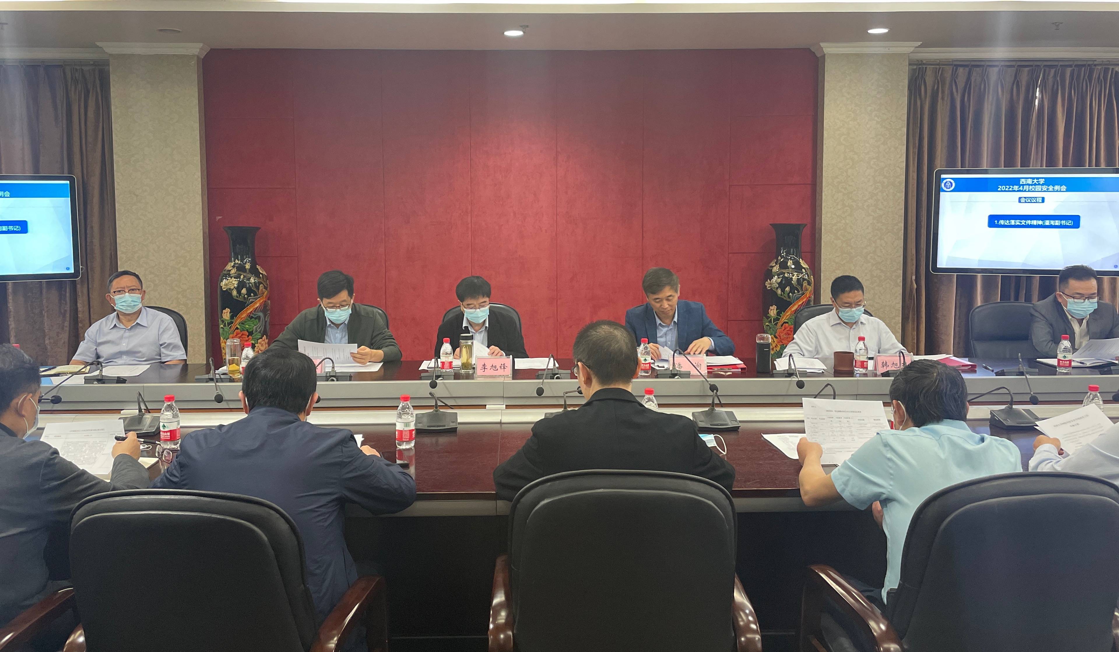 潘洵、韩旭东传达落实教育部、市教委有关文件精神,要求各单位认真学习领会,抓好贯彻落实,强化防范化解,全力以赴维护学校安全稳定大局。