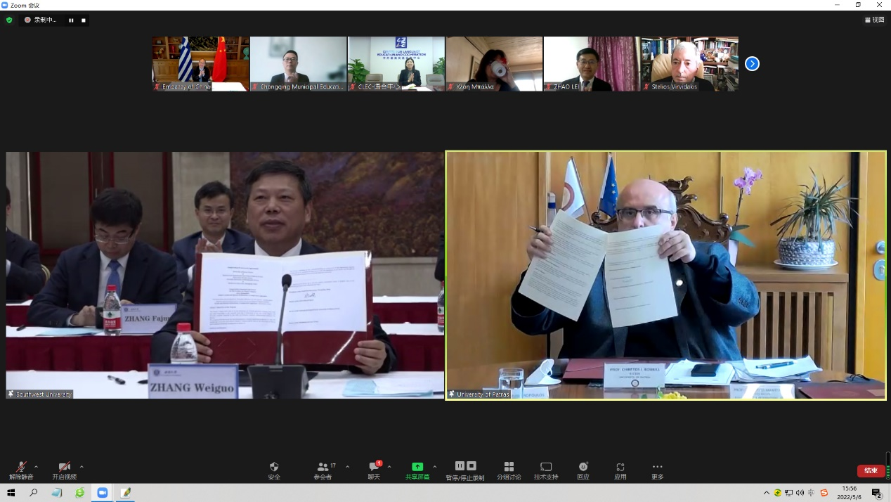 5月6日,由西南大学联手帕特雷大学、雅典大学、亚里士多德大学和克里特大学打造的“中国—希腊文明比较”联合硕士项目线上签约仪式顺利举行。