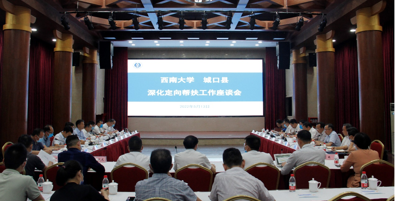 座谈会上,赵国华介绍了学校定向帮扶城口县工作进展情况,提出下一步帮扶工作打算。袁开勇介绍城口县巩固拓展脱贫攻坚成果同乡村振兴有效衔接工作方面的情况,并对今年的帮扶工作提出建议。城口县领导和相关部门提出帮扶合作需求,学校相关部门、学院提出帮扶合作建议,双方就城口农业产业、基础教育、文化旅游等相关合作事宜进行深入讨论。