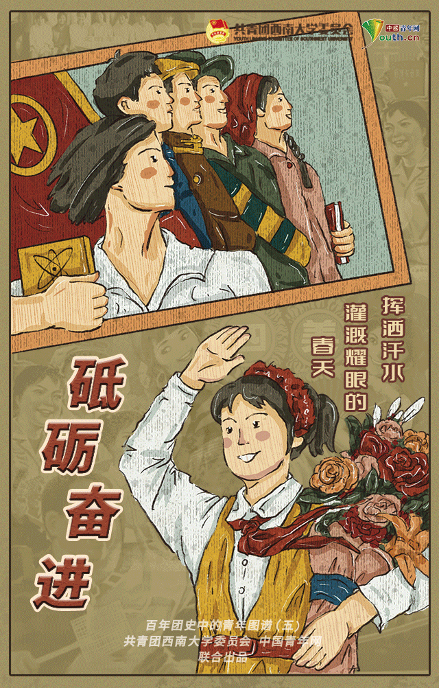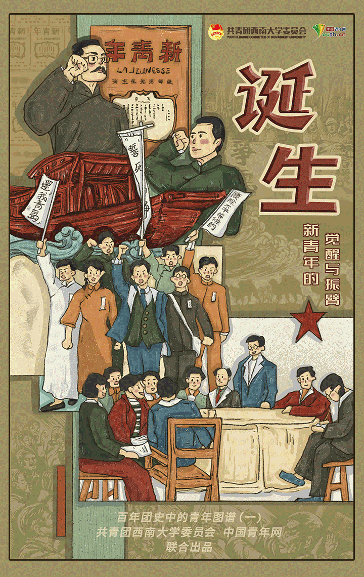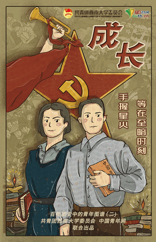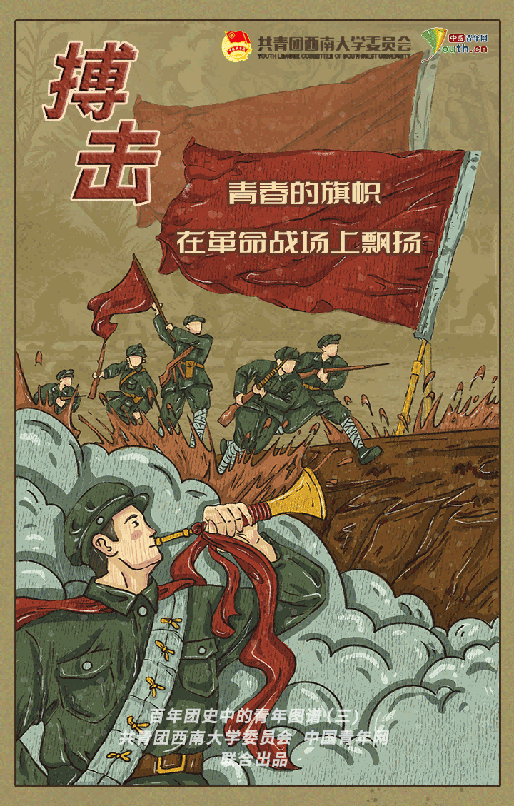 漫绘百年团史,续写青春荣光。4月29日—5月7日,由中国青年网联合西南大学团委共同打造的“百年团史中的青年图谱”系列漫画相继推出。该漫画由学校团委5名青年学生骨干倾力打造,以青年人喜爱的方式回顾中国共青团的百年历史,帮助青年坚定历史自信,筑牢历史记忆,读懂百年团史中国的“青春担当”。