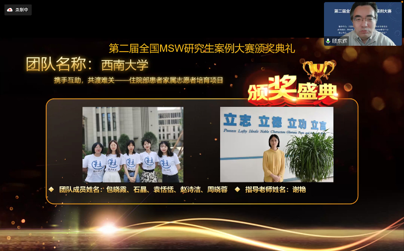 据悉,本次大赛由华东理工大学社会与公共管理学院MSW教育中心承办,上海高校智库“社会工作与社会政策研究院”协办,共收到来自北京大学、中国人民大学、复旦大学等120家MSW研究生培养单位的280支参赛团队报名参赛。参赛案例紧紧围绕社会工作领域的实际问题,涉及儿童、青少年、老年、妇女、残疾人、家庭、社区、医务等社会工作的诸多领域,代表了我国MSW研究生案例撰写的最高水平。大赛分初赛和决赛两个阶段,大赛评委秉承质量优先、总量控制的原则匿名遴选出全国百强案例,其中排名前36位的案例获得决赛资格。西南大学社会工作专业硕士教育凭借运用扎实的理论和方法体系,解决社会服务中“本土化”的问题,自大赛举办以来,连续两届累计4个案例入选百强案例,充分体现学校社会工作专业在培养应用型高素质人才方面所取得的成效,有力助专业硕士研究生教育高质量发展,完善校企产学研一体化模式,服务地方社会发展。