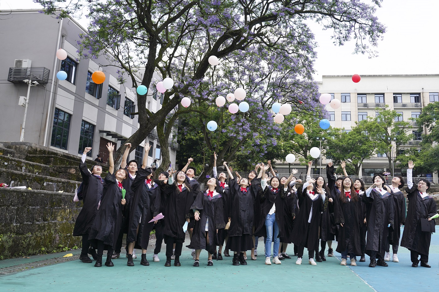 蓝花楹的花朵呈紫蓝色,雅丽清秀,气质浪漫,恰好符合毕业生那种对青春的感伤和对未来的憧憬,因此,它也被西南大学师生称为“毕业花”。第四运动场旁,三株树龄五十多年的蓝花楹树下已经成为毕业生们拍摄毕业照的首选网红打卡地。