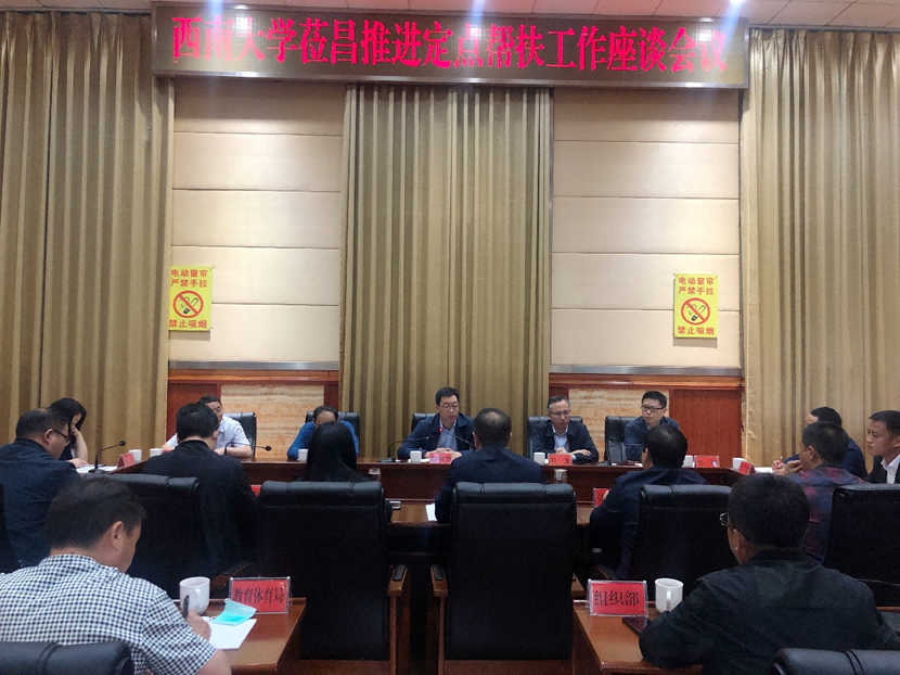 16日,在昌宁县召开定点帮扶工作座谈会,昌宁县委书记杨斌斌,副县长段杨、张加全,学校挂职干部谭志友、李德谋、田再悦、冉江渝,昌宁县相关部门负责人参加会议。