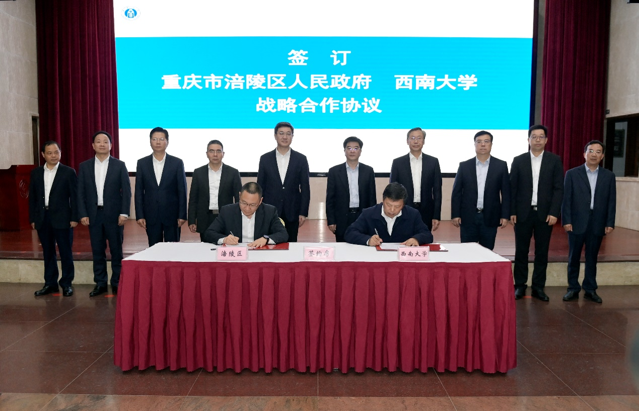 张卫国与刘忠代表区校双方签署战略合作协议。赵国华与钟涛签署共建西南大学涪陵研究院合作协议、重庆市渝东南农业科学院托管合作协议,与涪陵榨菜集团董事长周斌全签署共建创新创业基地合作协议。