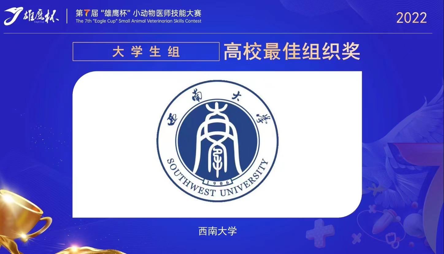 鹰击长空竞自由,逐鹿西北展雄风。学校学子在第7届“雄鹰杯”小动物医师技能大赛上取得优异成绩,再次夺得第7届“雄鹰杯”小动物医师技能大赛大学生组“团体特等奖”。学校获得“最佳组织奖”,是全国唯一连续四届斩获该赛事特等奖的高校。