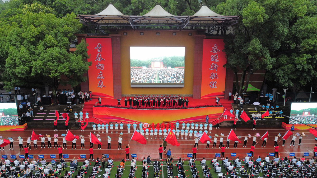 典礼开始前,全体毕业生唱响《天生之约》,共同带来“青春向未来 奋进新征程”主题快闪。典礼在庄严的国歌声中正式开始。