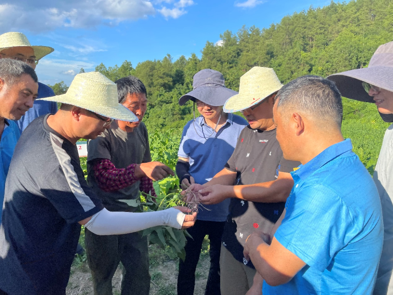 7月9日下午,志愿者服务队不顾长途跋涉,顶着烈日来到田间地头,考察彭水县粮食生产和烟叶生产现状,特别关注烟粮套作田间试验开展情况,对农户进行了实地技术指导,拿到大田生产第一手资料,为后续研讨做充足准备。
