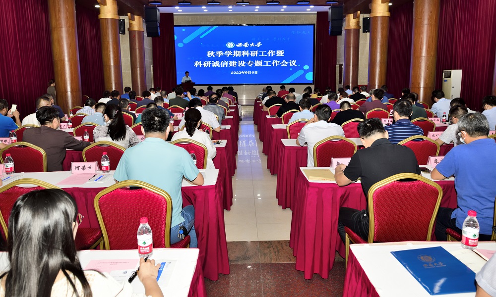崔延强作总结讲话,他要求,各单位和相关职能部门在学校创新研究“2035先导计划”基础上再聚焦、再细化,制定西南大学开展有组织科研实施方案,进一步凝练形成主攻方向、主攻团队,明确重点任务和攻关目标,开展有组织科研攻关,培育国家战略科技力量。他指出,各单位要高度重视和加强科研诚信与作风学风建设,扎实开展科技论文自查整改工作,优化完善科研诚信建设体系,弘扬新时代科学家精神,营造良好学术生态。