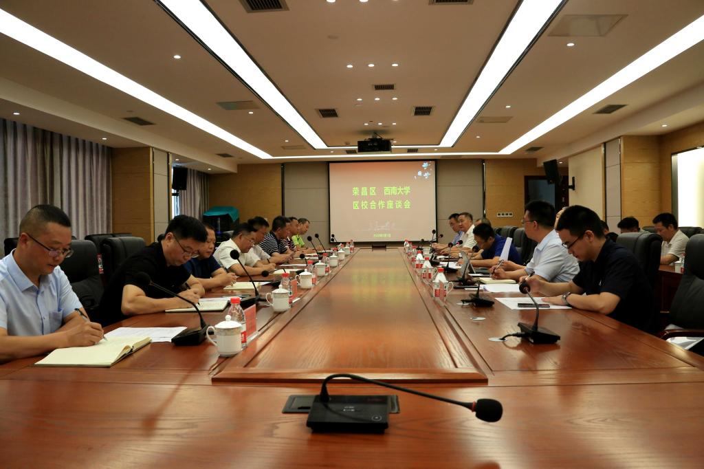 为深化校地合作,促进互动双赢,9月7日下午,荣昌区委副书记龚建海带领区委办公室、科技局、教委、农业农村委、现代农业畜牧业管委会、荣昌(国家)生猪大数据中心等部门领导到荣昌校区调研指导工作,学校副校长韩旭东、重庆市畜牧科学院纪委书记宋刚参加调研。韩旭东主持座谈会。