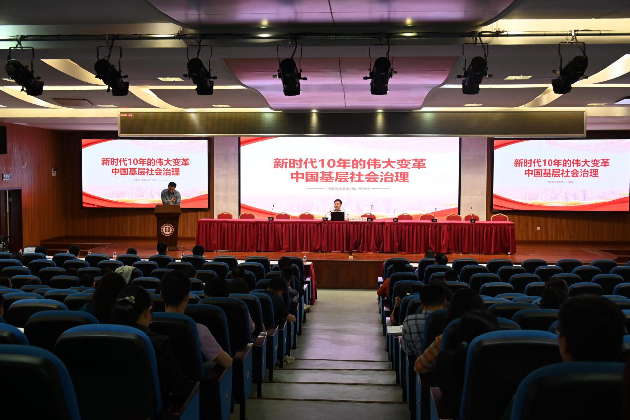 近日,学校马克思主义学院邀请中共重庆市委政法委副书记马奇柯以“新时代10年的伟大变革:中国基层社会治理”为题作专题学术报告。本次专题讲座由学校马克思主义学院、全国高校思政课“手拉手”集体备课中心(西南大学-重庆)和重庆市大中小学思政课一体化建设协同创新中心主办。讲座由马克思主义学院院长白显良主持。