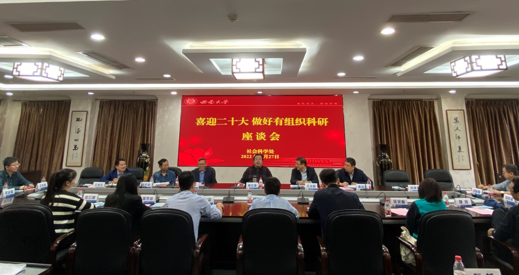 9月27日上午,“喜迎二十大 做好有组织科研”工作研讨会在行署楼A栋第五会议室召开。副校长崔延强出席会议,社会科学处及文学院、外国语学院、汉语言文献研究所、中国新诗研究所等单位的领导和专家参加会议,会议由社会科学处处长王牧华主持。