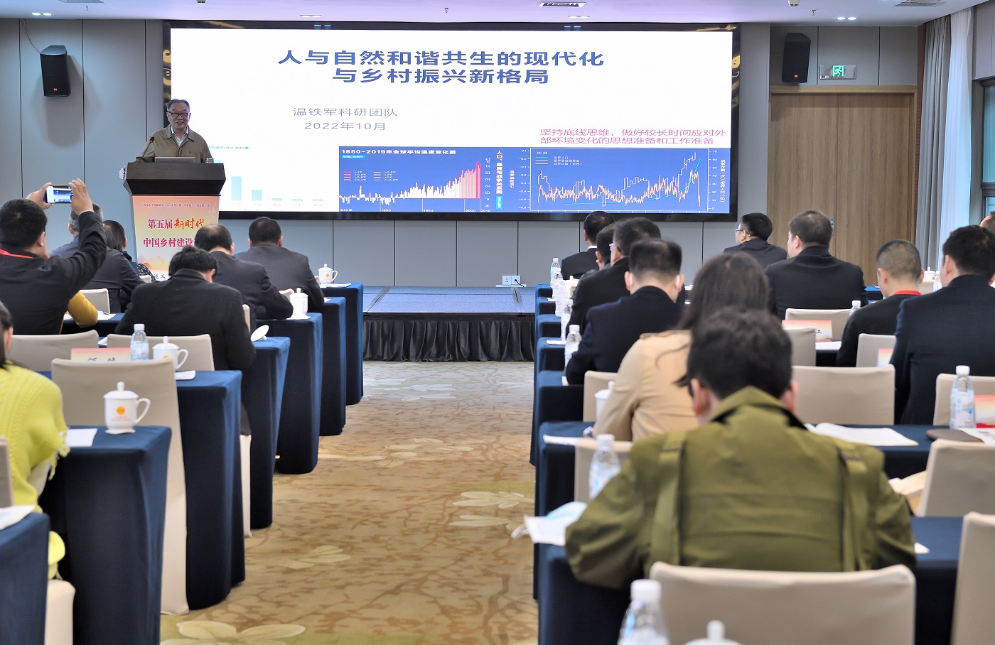 本次论坛设五个分论坛,论坛主题包括:“两山”“两化”与高质量发展,乡村治理与乡村建设,艺术赋能和文化振兴,乡村振兴的社会参与,以及纪录片《七声》展映讨论会。温铁军在巴南的田间会场中,为第五届中国乡村建设论坛致闭幕辞。
