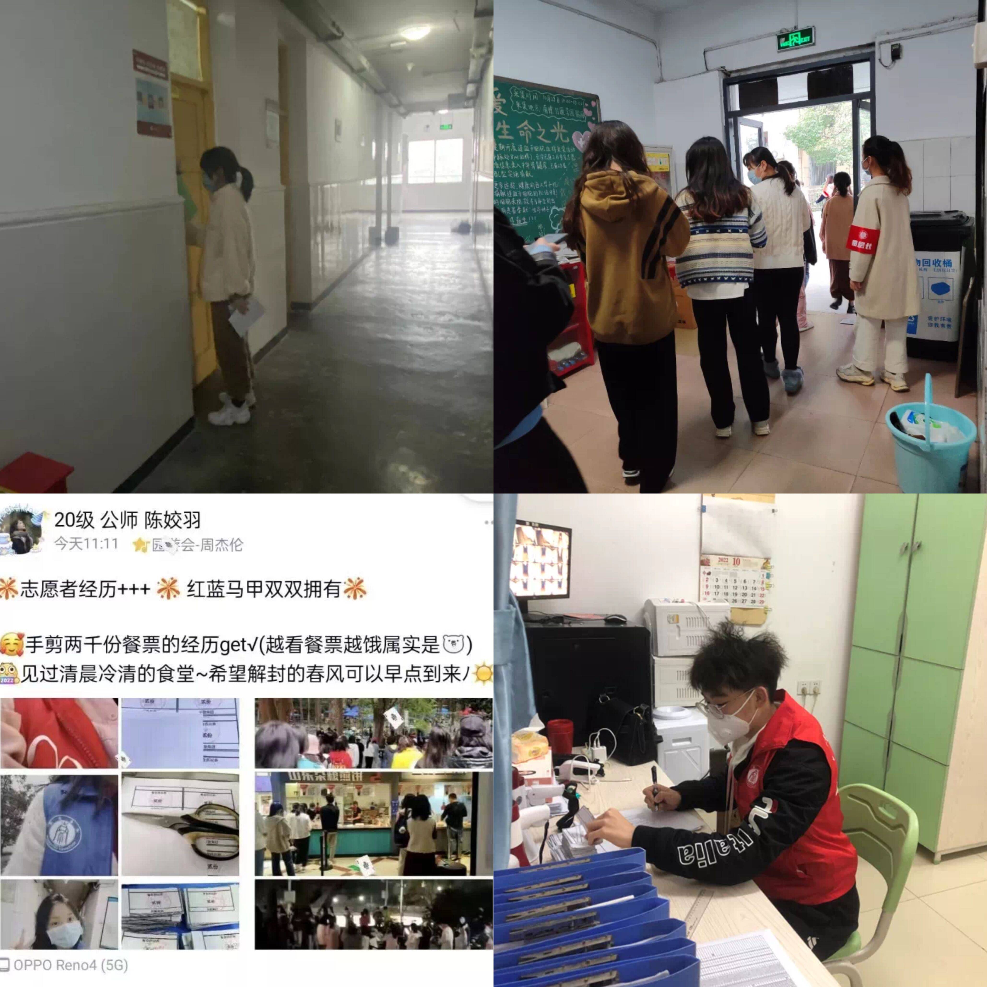 “见过清晨清冷的食堂,希望解封的春风可以早点到来。”疫情大考当前,生科学子们以行动守护校园,用责任诠释青年担当,已有65名同学报名加入志愿者队伍,其中“红色基因”党员示范班和学生骨干更是积极响应行动号召。2019级白南班党员江虹霖担任起了楼长,协助楼栋辅导员做好扫楼工作;2019级师范班党员耿佩茹第一时间组织支部成员们加入学校的学生党员“特立”先锋队,贡献力量;2020级师范班陈姣羽,穿梭在食堂维持秩序……他们用点点微光汇聚成战“疫”中的曙光。