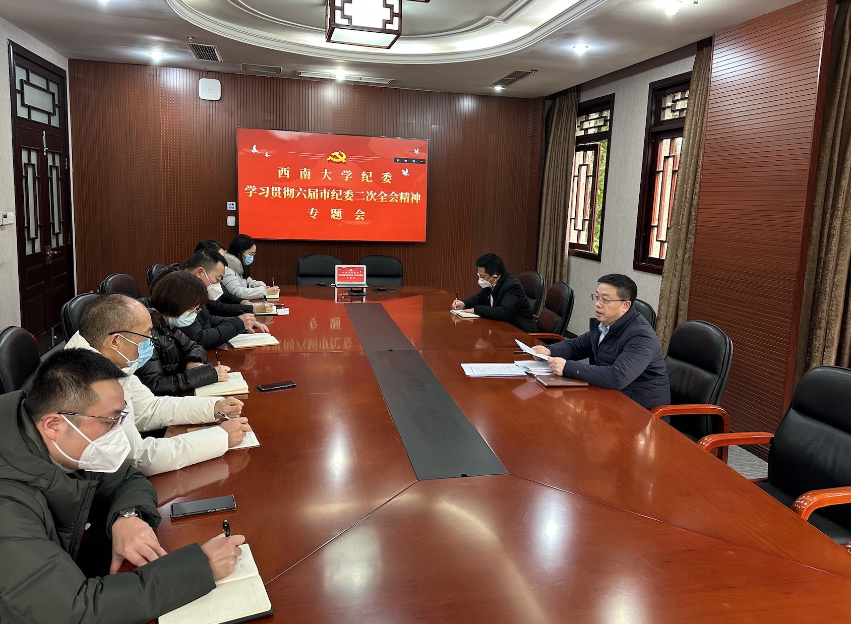夏玉峰组织与会人员集中学习了习近平总书记在二十届中央纪委二次全会上的重要讲话、李希代表中央纪律检查委员会常务委员会作的工作报告、中国共产党第二十届中央纪律检查委员会第二次全体会议公报,以及袁家军在六届市纪委二次全会上的讲话、宋依佳代表重庆市纪律检查委员会常务委员会作的工作报告、中国共产党重庆市第六届纪律检查委员会第二次全体会议决议,研究部署了学校纪检监察巡察系统贯彻落实会议精神举措。