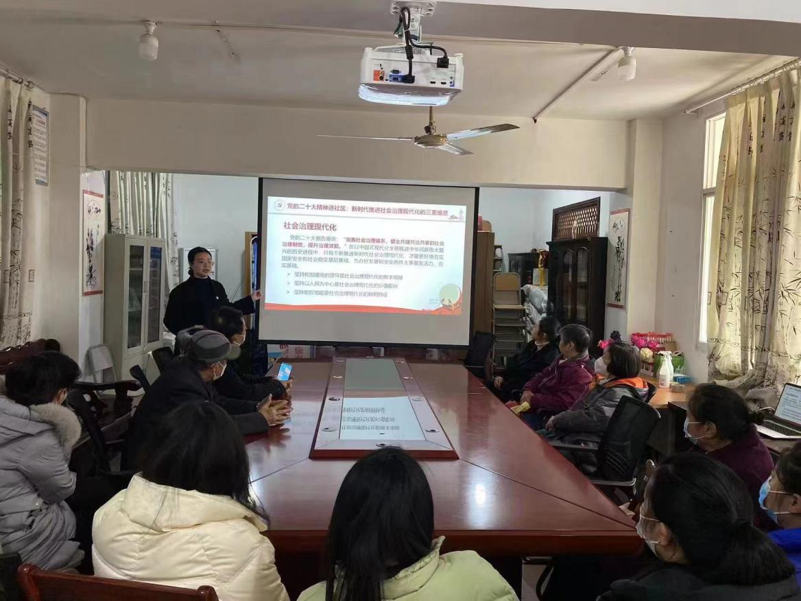 2月10日,外国语学院“学行”党员先锋队成员黄梦源、何文婷来到重庆市巴南区莲花街道石羊街社区,为社区工作人员和居民开展了题为“激发思想共鸣,汇聚精神力量”的主题宣讲,以“人民”这一核心概念为切入点,结合社区生活实际,和大伙儿摆起了“龙门阵”,在交流社区生活点滴的同时,以活泼亲和的方式介绍了党的二十大报告蕴含的“人民观”。