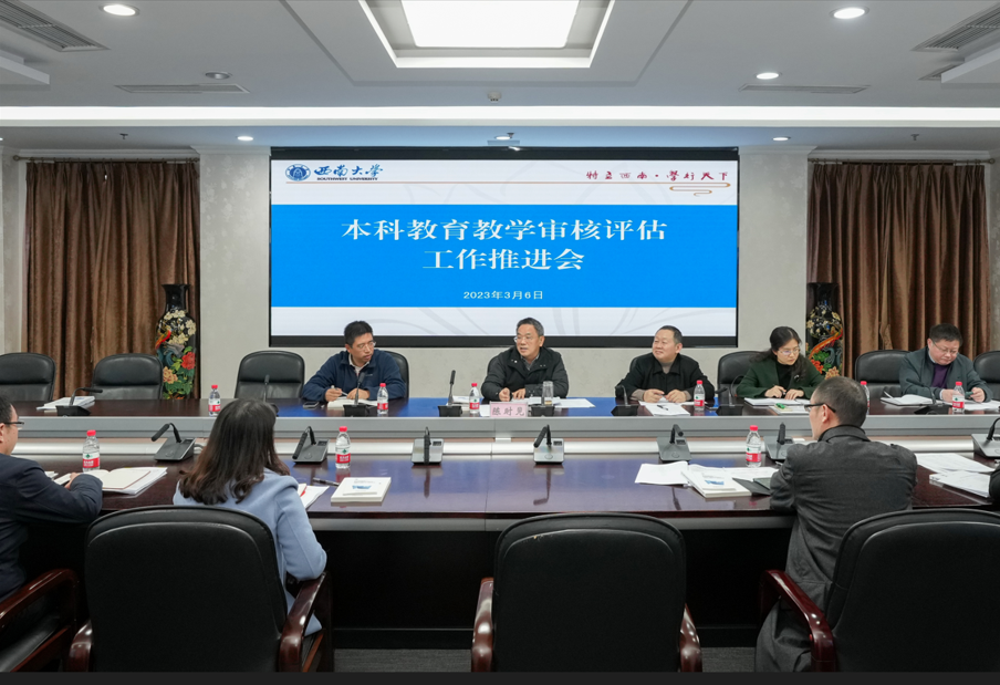 为切实推进学校本科教育教学审核评估工作,落实现阶段自评自建任务,3月6日下午,学校在行署楼第五会议室召开本科教育教学审核评估工作推进会。副校长陈时见出席会议,校审核评估工作领导小组成员单位负责人、评建办公室现阶段工作人员参加了会议。会议由教务处处长吴能表主持。
