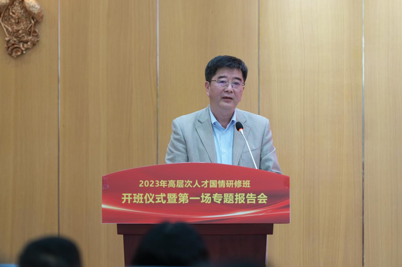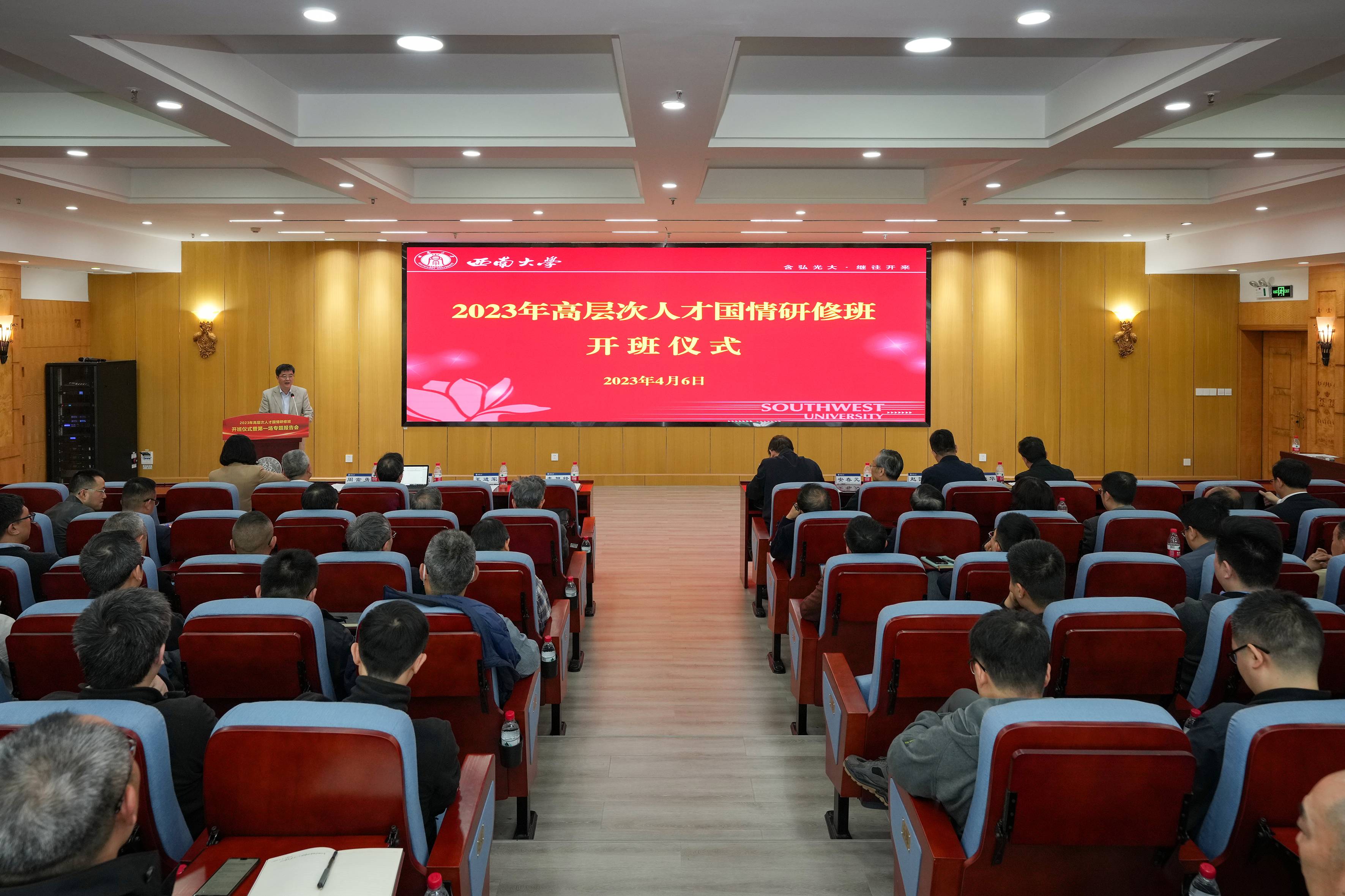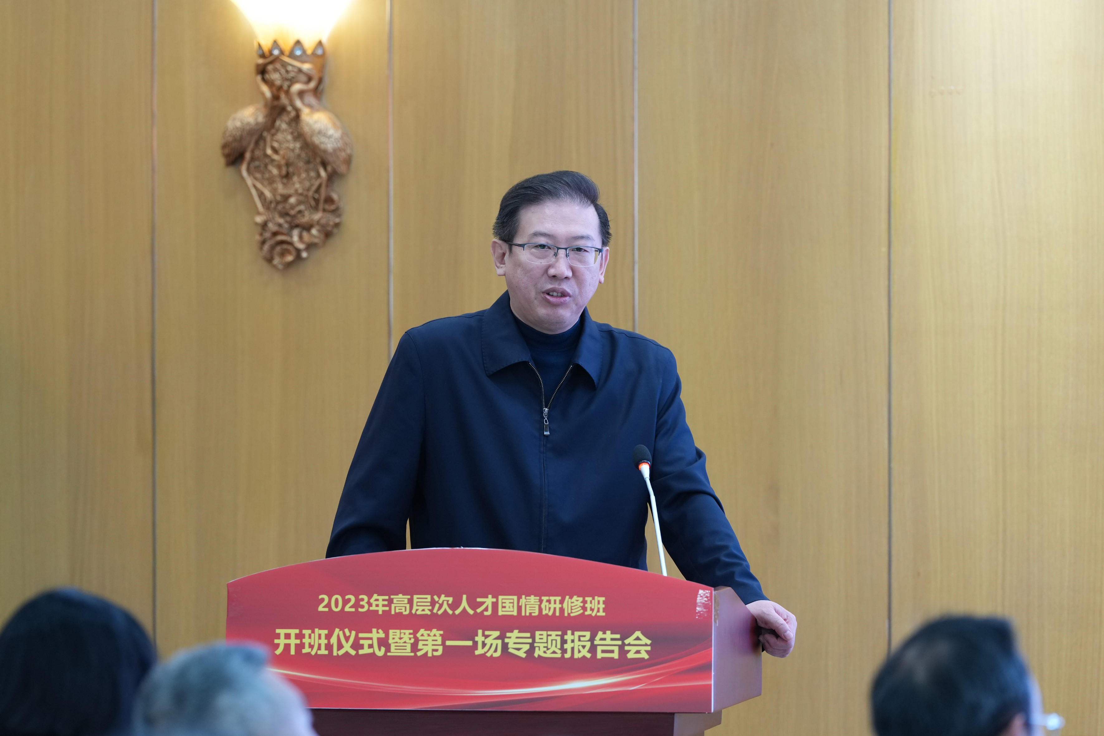 4月6日下午,“凝聚人才‘向心力’,踔厉奋发‘新征程’”——西南大学2023年高层次人才国情研修班开班式暨首场报告会在田家炳书院举行。报告会由学校党委书记李旭锋主持,开班仪式由党委副书记安春元主持。学校副校长王进军、赵国华、王志坚,学校全职在岗国家级人才、相关职能部门负责人、各自然科学类教学科研单位党政主要负责人参加了开班式及首场报告会。