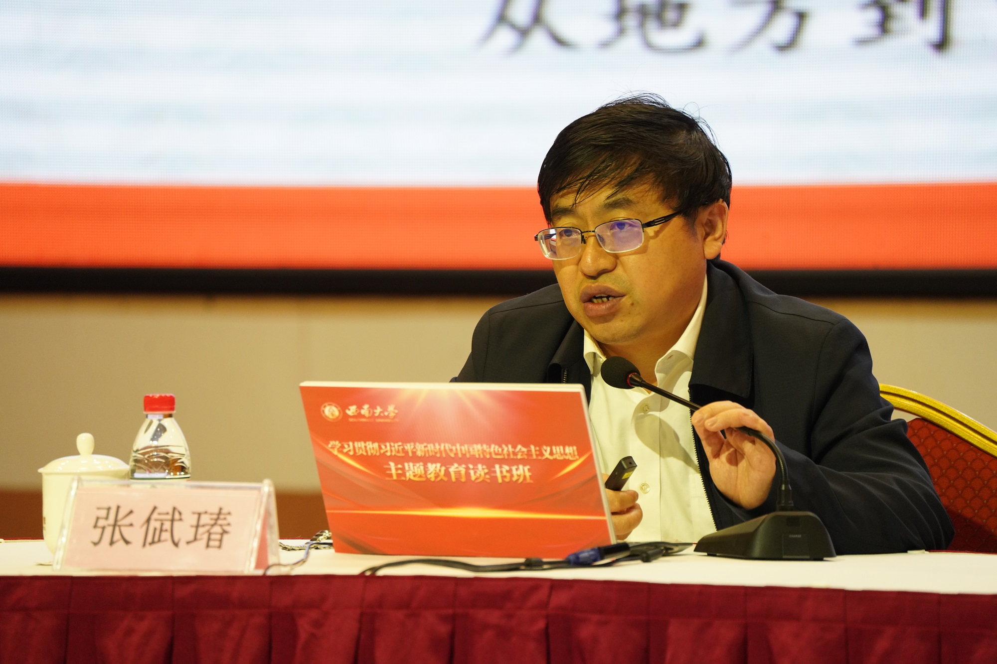 编者按:当前,全国各地正在深入开展学习贯彻习近平新时代中国特色社会主义思想主题教育。西南大学推出《主题教育进行时》栏目,旨在引导广大党员干部师生切实把思想和行动统一到习近平总书记重要讲话精神和党中央决策部署上来,鼓舞大家以高度的政治自觉和饱满的精神状态,对标对表“学思想、强党性、重实践、建新功”总要求投身学习和实践,汇聚起把习近平新时代中国特色社会主义思想转化为坚定理想、锤炼党性和指导实践、推动工作的强大力量,敬请关注。