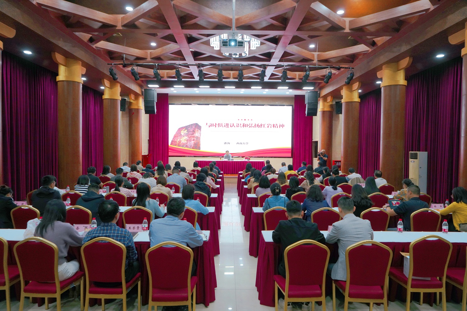 潘洵从“为什么要与时俱进深化对红岩精神的认识”“如何与时俱进认识红岩精神的形成发展”“如何与时俱进认识红岩精神的培育主体”“如何与时俱进认识红岩精神的历史方位”“如何与时俱进认识红岩精神的丰富内涵”“如何与时俱进认识红岩精神的现实价值”“与时俱进弘扬红岩精神的重庆行动”七个方面进行了详细阐述。