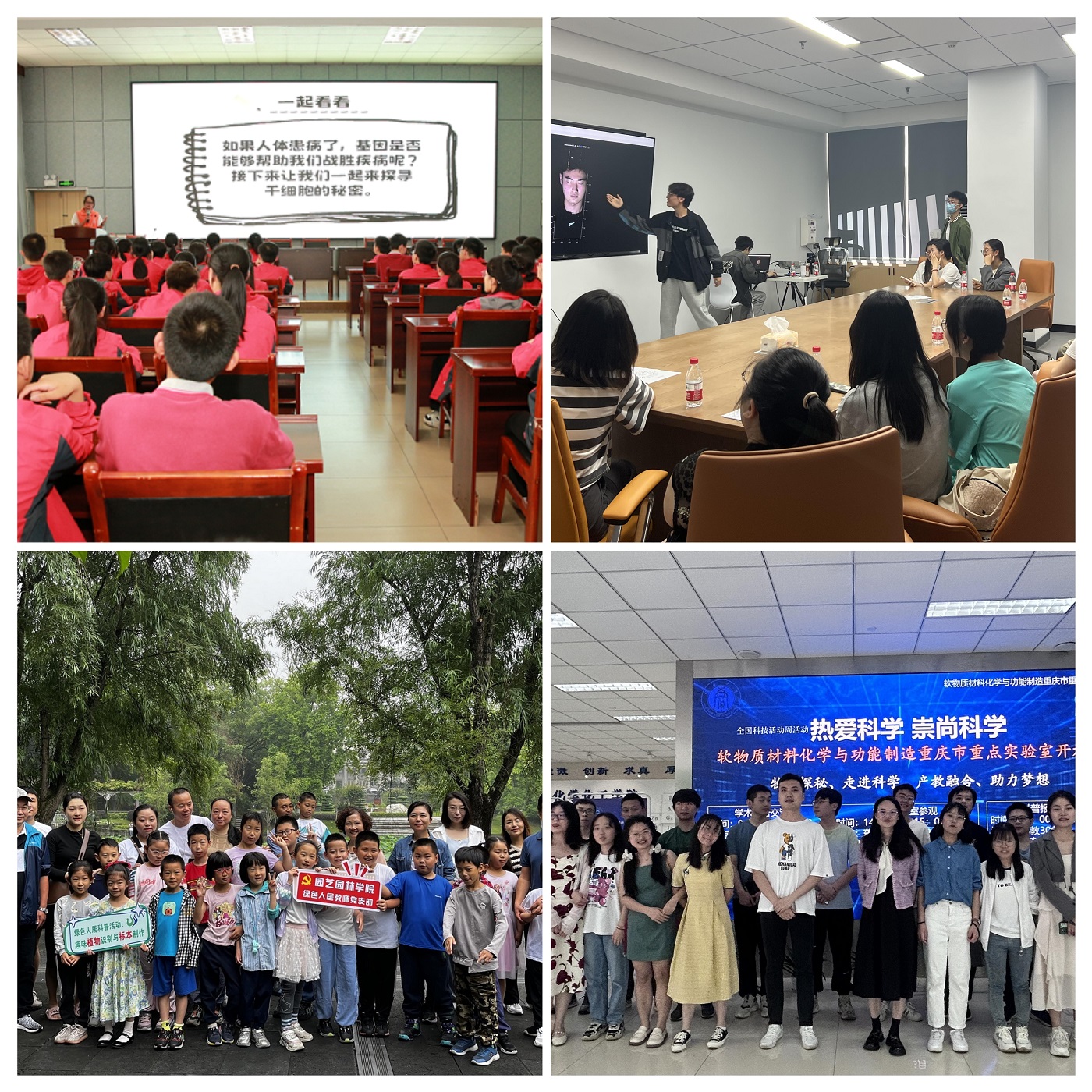学校科普基地组织开展了一系列广大青少年感兴趣的科普实践活动。蚕桑丝绸科普基地组织开展了“我与家蚕基因库零距离”“身临其境蚕学宫感受科学家精神”“你知道手上的细菌有多少吗?”等科普活动;天文地质馆组织开展了“天文地质馆参观体验活动”“星空观测活动”“寻找重庆最美星空观测点”等科普活动;科学研究教育中心组织开展了传染病预防中的“小学问”“科普进校园 微光启未来”“我国的芯片产业到底卡在哪里?”等进中小学、进社区科普活动;科普空间站组织开展了“小小科学家”系列科普体验营,受到了各类各级媒体广泛关注报道。