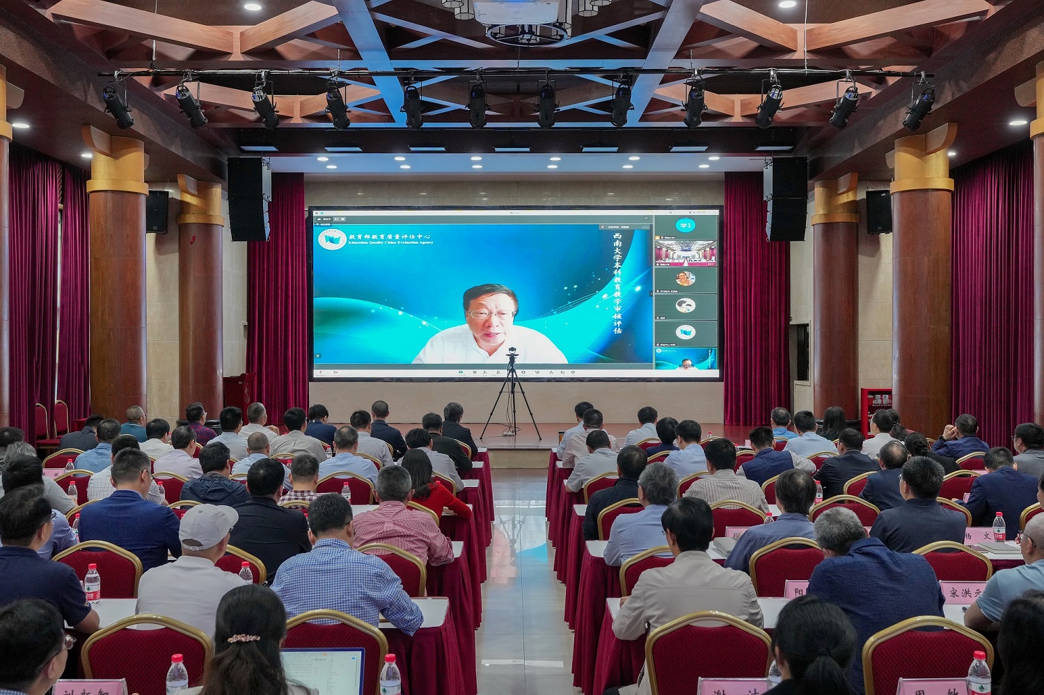 刘益春介绍了专家组成员,就审核评估的主要工作任务、工作内容和纪律要求等作简要介绍。他指出,本次评估分线上评估和入校评估两个阶段,专家组将通过查阅资料、听课看课、深度访谈等多种方式对学校本科教育教学工作进行全面考察,对标评估指标审核各项教育教学工作的达成情况,查找存在的主要问题,分析产生问题的原因并提出整改意见与建议。他强调,学校要重点关注本轮评估的几个关键变化:一是从“教学评估”到“教育教学评估”的变化。本轮评估是对学校整体情况进行的全方位考察,重点关注学校立德树人举措成效和“三全育人”整体格局;二是强调建立“质量共同体”的新型治理关系。评估机构、参评高校和评估专家是一个质量共同体,要共同研究、真诚相待、协同做好本次评估工作。三是更加强化持续改进效果。要通过审核评估推动学校建立教育教学工作的持续改进机制,要坚持问题导向,强化问题整改,推动学校更好地发展。他表示,西南大学作为中西部地区第一家参加第一类审核评估的高校,积极担当、敢为善为,专家组将认真履行职责,尊重校方、尊重教师、尊重学生,与学校一道做好本次评估工作。