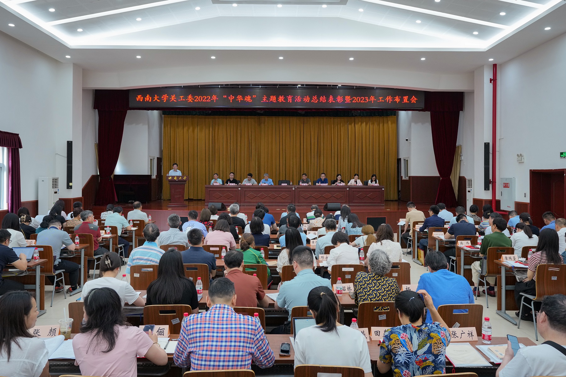 6月12日下午,学校召开2022年“中华魂”主题教育活动总结表彰暨2023年工作布置会。学校党委书记、关工委主任李旭锋,关工委常务副主任宋乃庆出席会议。学校党委副书记、关工委副主任潘洵主持会议。相关职能部门负责人,各学院(部)党委书记、关工委主任,常务副主任,联络员,校关工委志愿者服务团队长以及获奖师生代表等130余人参加会议。