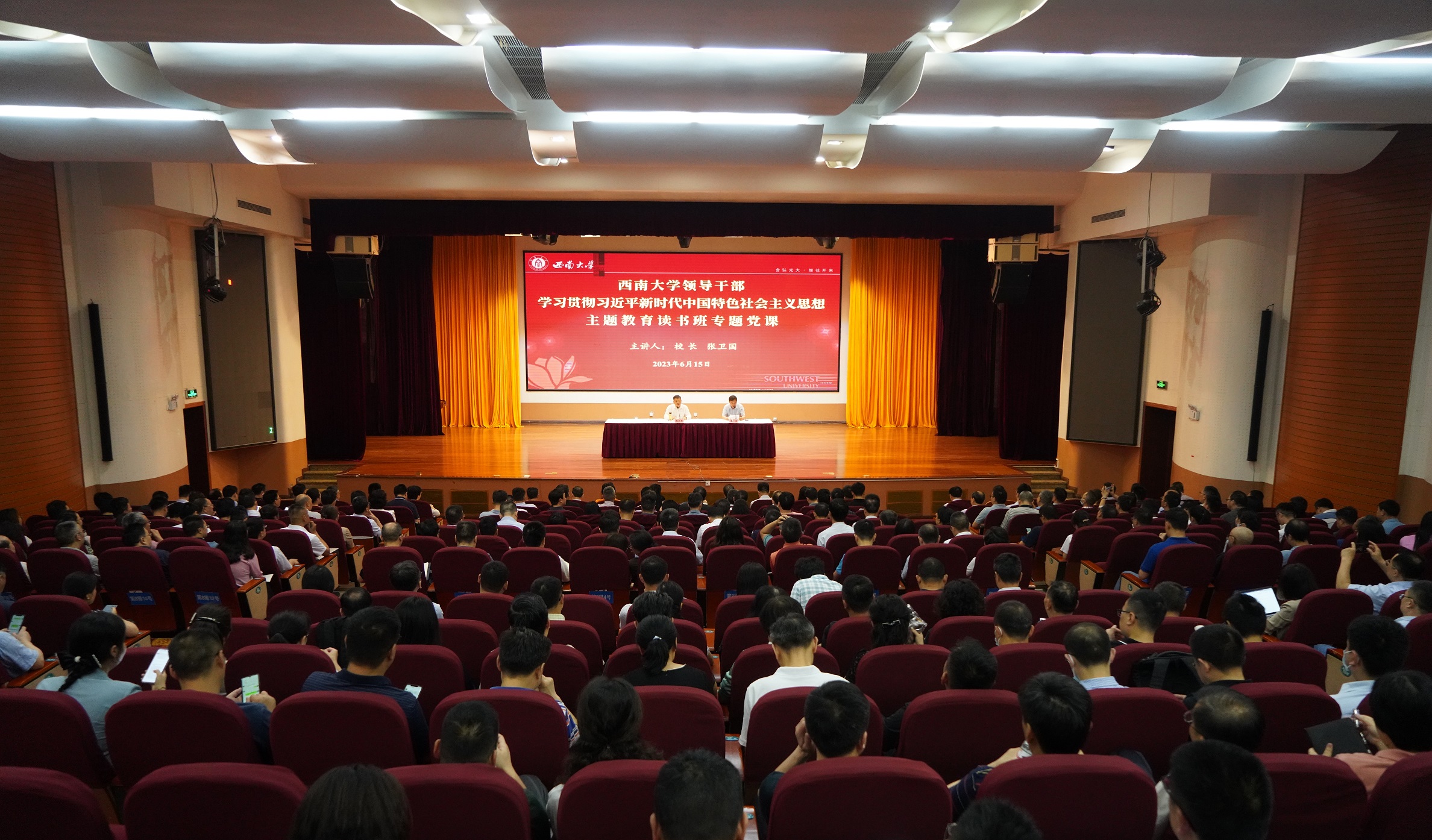 编者按:当前,全国各地正在深入开展学习贯彻习近平新时代中国特色社会主义思想主题教育。西南大学推出《主题教育》栏目,旨在引导广大党员干部师生切实把思想和行动统一到习近平总书记重要讲话精神和党中央决策部署上来,鼓舞大家以高度的政治自觉和饱满的精神状态,对标对表“学思想、强党性、重实践、建新功”总要求投身学习和实践,汇聚起把习近平新时代中国特色社会主义思想转化为坚定理想、锤炼党性和指导实践、推动工作的强大力量,敬请关注。