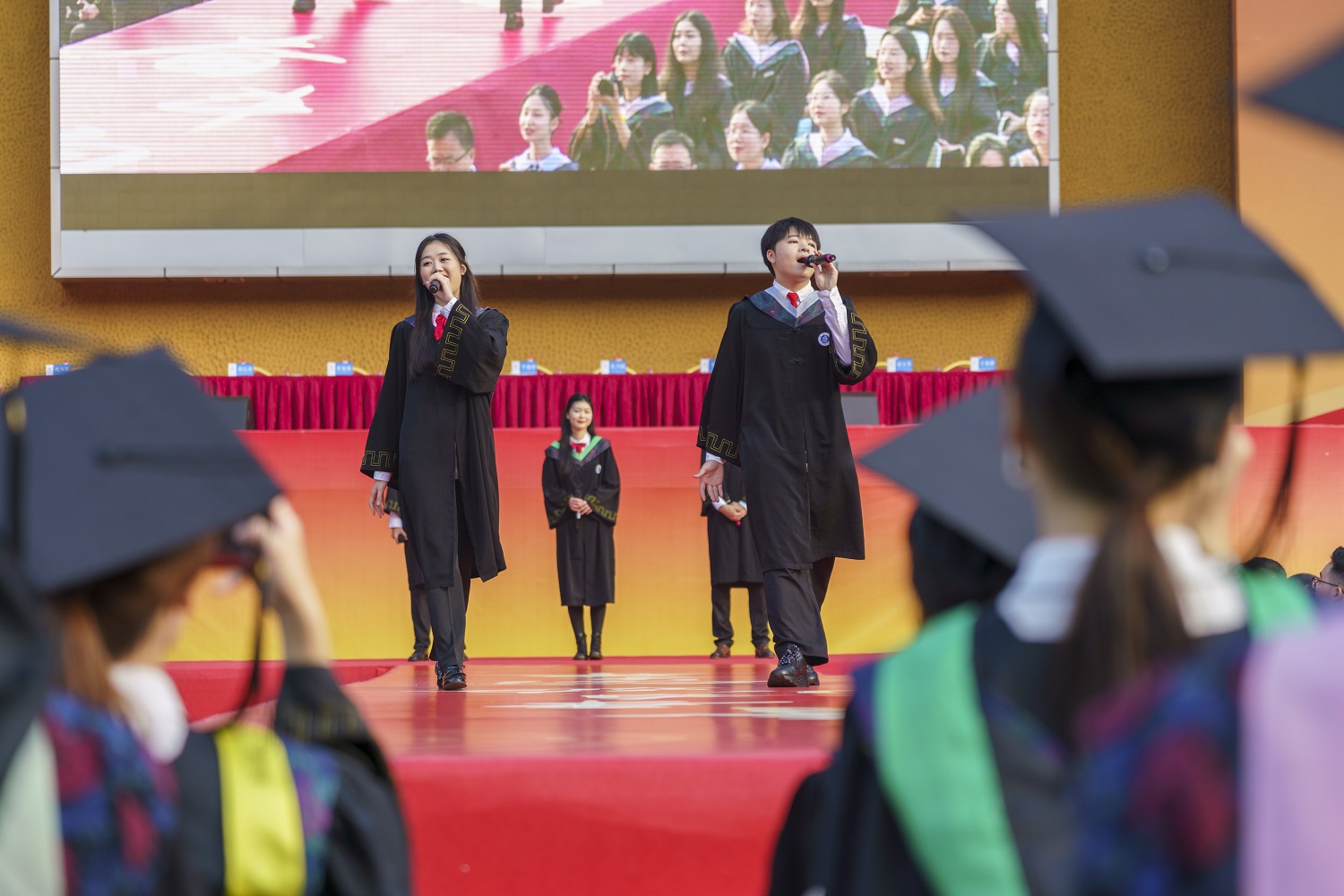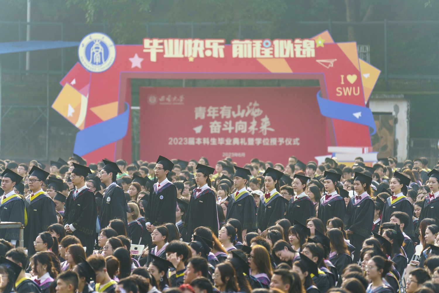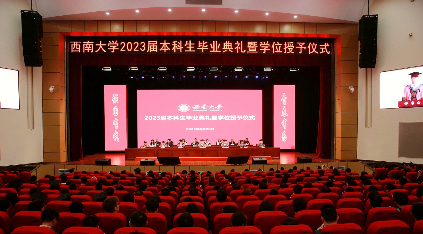 毕业典礼暨学位授予仪式在全场师生齐唱《西南大学校歌》中圆满结束。