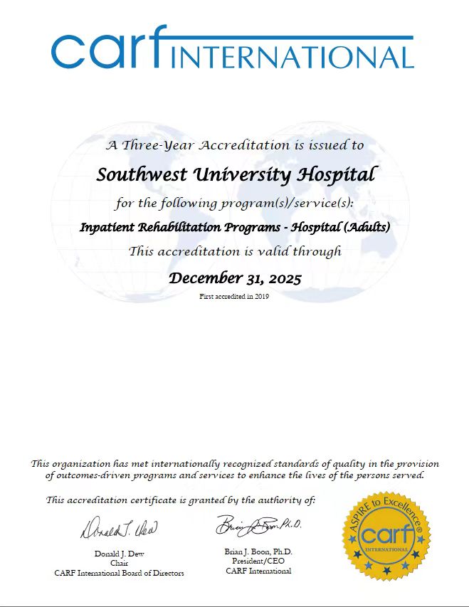 医院康复医学中心成立于2012年5月,在2020年1月正式通过CARF国际康复质量管理体系三年期认证,当年是全国首家通过国际康复质量管理金标准CARF认可的高校医院,也是国内第18家通过CARF认证的医疗机构,西部地区第2家获此殊荣的医疗机构。