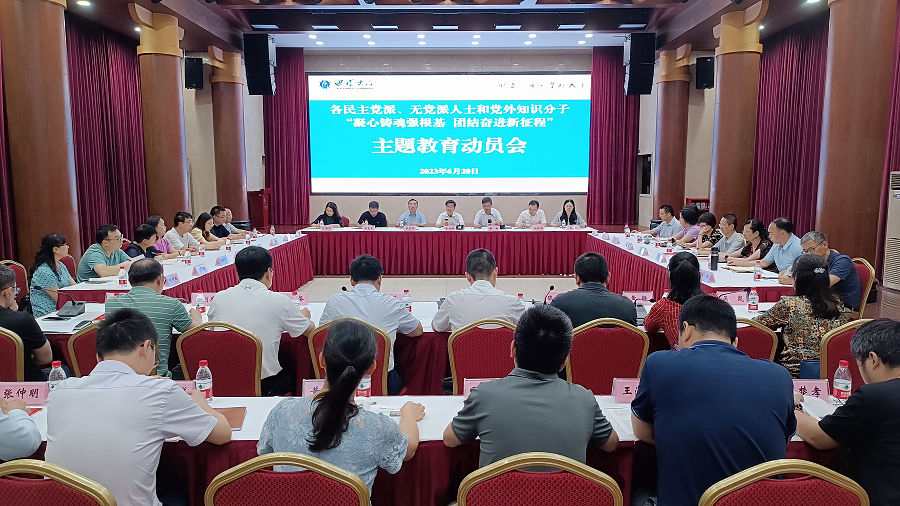 民革西大总支副主委张永红、民盟西大基层委员会副主委阳泽、民建西大总支副主委陈文银、民进西大总支主委吕家恪、农工党西大委员会副主委黄静、致公党西大基层委员会副主委任剑乔、九三学社西大基层委员会副主委吴岚、学校知联会会长付志锋等先后发言,畅谈了对学校党委开展主题教育的认识和体会,汇报了开展“凝心铸魂强根基、团结奋进新征程”主题教育的工作计划安排。大家纷纷表示,学校党委开展的主题教育起点高、措施实、效果好,真正推动了主题教育走深走实,对党外人士开展好主题教育作出了生动示范。学校各民主党派、无党派人士和党外知识分子将以党为师,扎实开展好“凝心铸魂强根基、团结奋进新征程”主题教育,以参政履职成效检验主题教育成果,切实把主题教育激发的巨大精神力量转化为助力学校事业高质量发展的自觉行动,为学校“双一流”建设贡献更大力量。