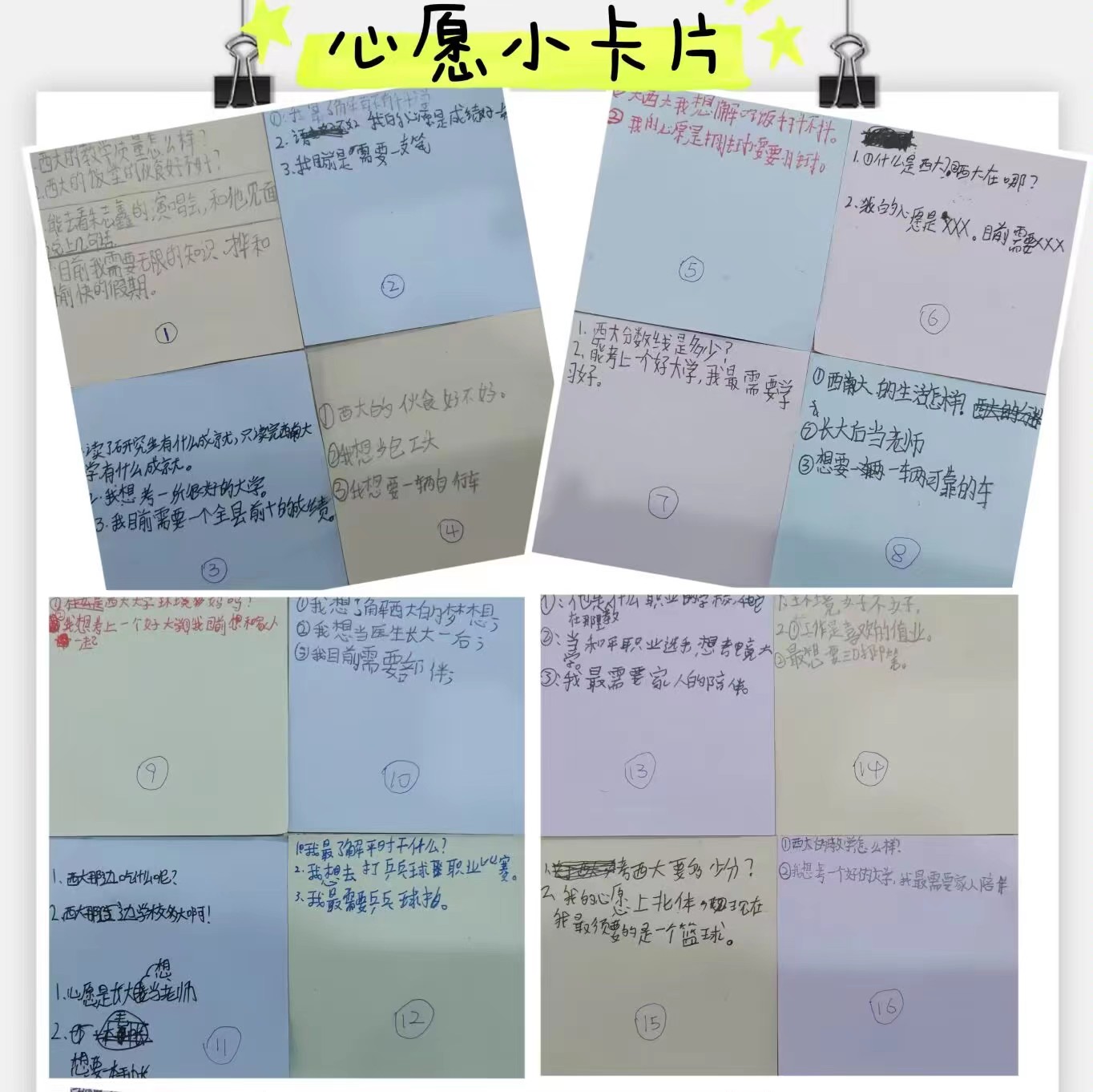 “我最需要的是陪伴”“我想当军人”“我想考西南大学” ……小小的心愿纸上载满了孩子们的愿景与期待。