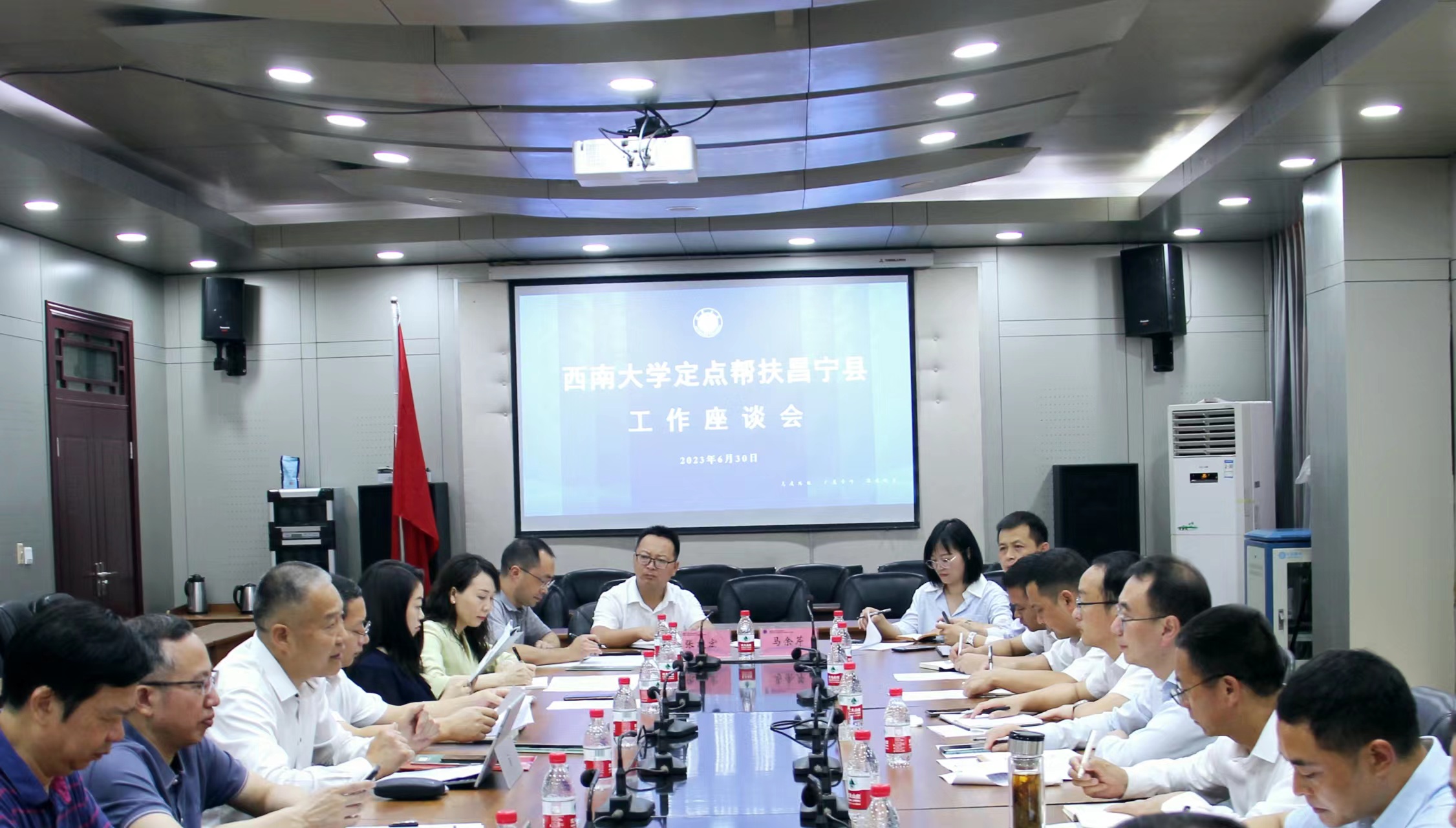 6月30日,昌宁县委书记杨斌斌一行来校对接定点帮扶工作。副校长葛信勇出席座谈会,国内合作处、培训与基础教育管理处、对外联络办公室、继续教育学院、附属中学、资产经营有限公司、后勤集团等单位负责人和相关专家,驻昌宁挂职干部田再悦、冉江渝参加座谈交流。