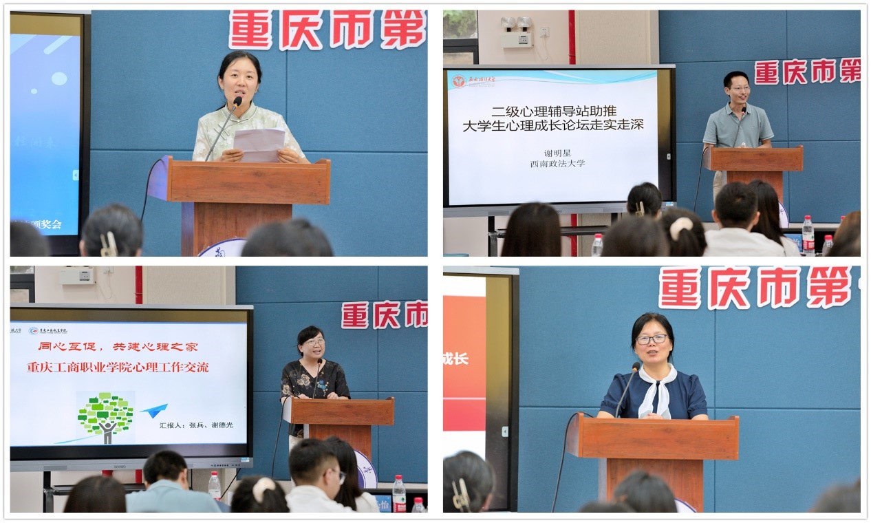 在6月30日举行的总结颁奖会上,8支学生队伍作为代表现场展演了心理成长微课和心理健康服务能力优秀作品。西南政法大学、重庆工商大学、重庆科技学院、重庆工商职业学院四所高校就二级心理辅导站的建设、课程思政平台的搭建、教学相长的案例分享、心理之家的共建机制展开了研讨和交流。张大均教授和朱卫嘉教授对大学生心理成长论坛提出前景展望。