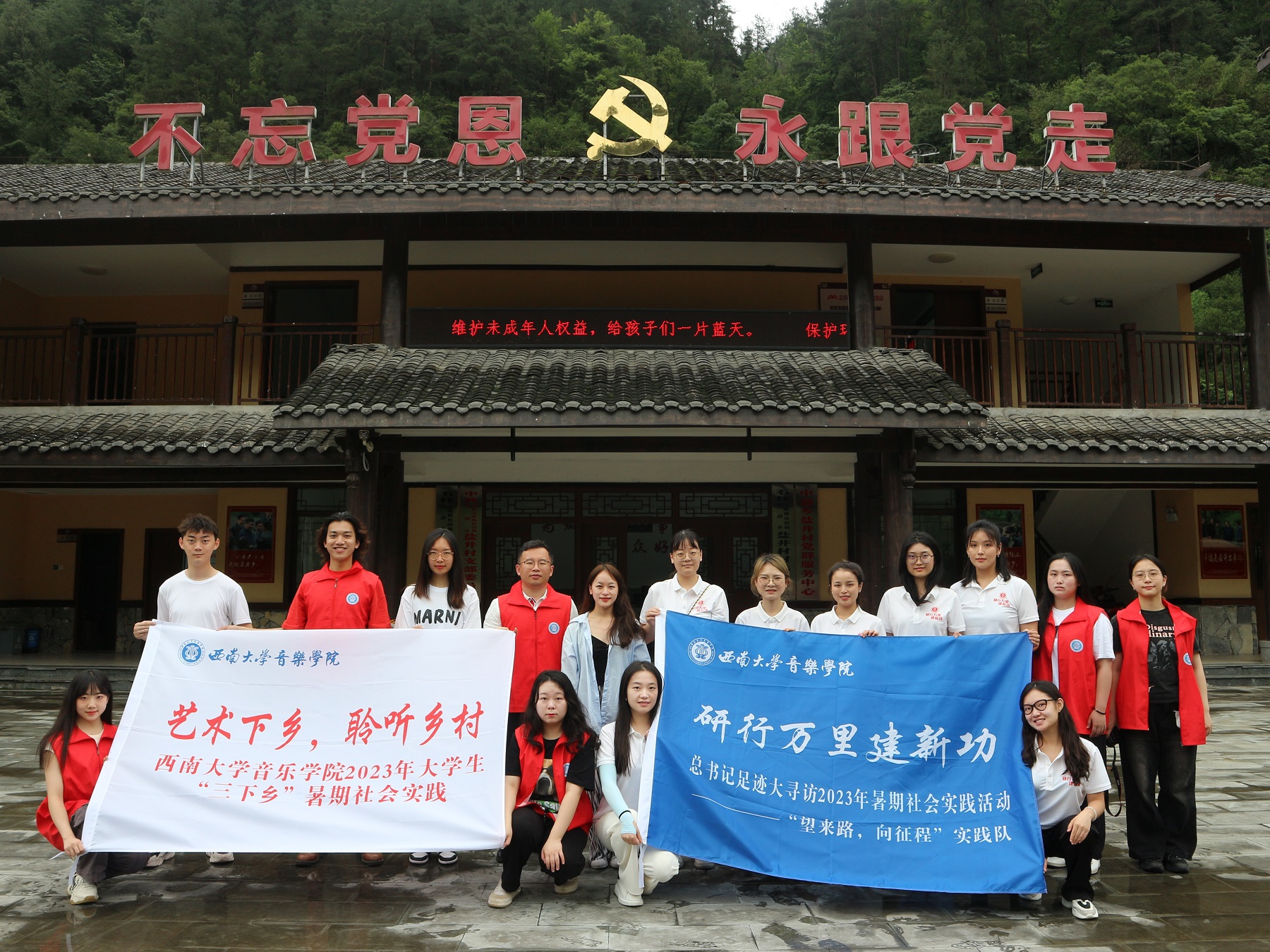 为全面学习贯彻习近平新时代中国特色社会主义思想和党的二十大精神,扎实推进主题教育走深走实,通过大寻访体验新时代伟大变革,进一步深化对习近平新时代中国特色社会主义思想的学思践悟,7月3日至7月5日,西南大学音乐学院“望来路,向新程”实践队开展了“研行万里建新功”、暑期“三下乡”社会实践。学院共有15名学生参与到本次社会实践活动中。