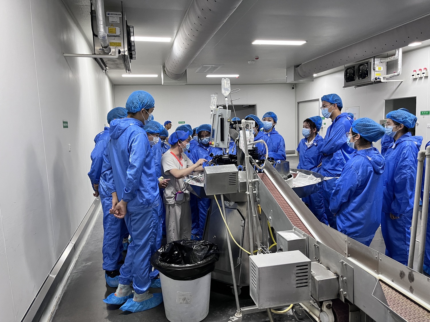 7月1日,社会实践小分队到达位于重庆市涪陵区的重庆正大饲料厂参观调研。在企业负责人带领下,成员们进入饲料生产车间入料区、检测区和出货区等生产区域实地参观,现场了解饲料生产加工的各个关键流程和核心环节,充分体验自动化、数字化和智能化的现代化饲料生产环境。