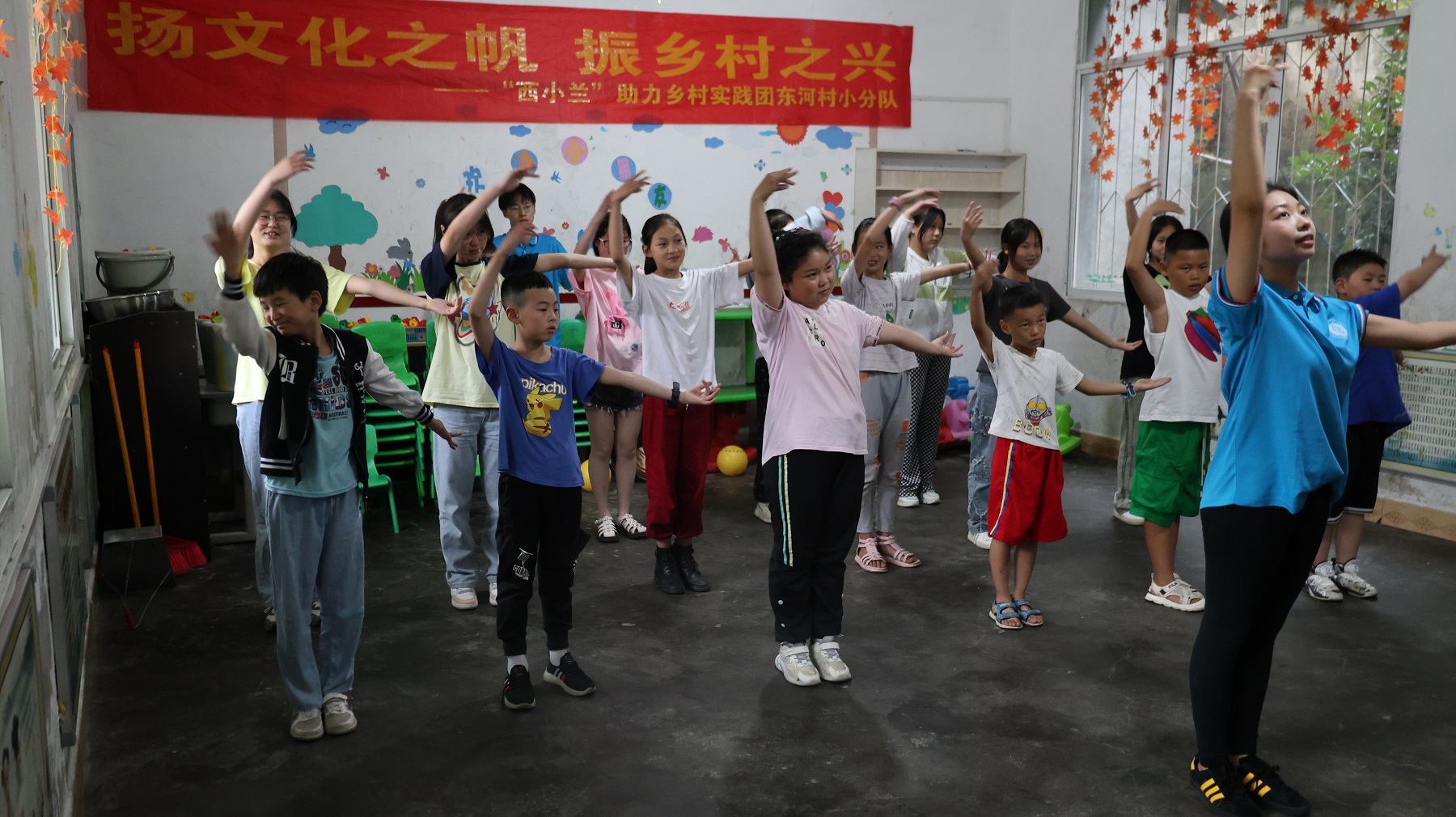 持长枪纵马,执妙笔生花,第一期“西小兰”助力乡村振兴实践团成员们组织开展了一系列以东河村、李坪村特色文化为定位的趣味课堂。课程涉及美术、书法、舞蹈等,让学生们在丰富的课程和有趣的课堂中提升美育素养,助力弘扬乡村文化。