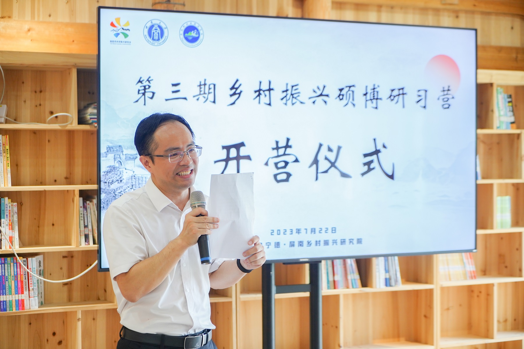 开营仪式由潘家恩教授主持,福建省乡村振兴研究会常务副会长、福建省住建厅原一级巡视员王胜熙,中央党校(国家行政学院)退休教授刘忱,屏南县人民政府副县长张肖枫,屏南县传统村落文化创意产业项目总策划林正碌,中国美术学院副教授、屏南县在地社会美育研究所所长陈子劲,屏南县熙岭乡党委书记张宜世、屏南县农业农村局副局长林鹏等共同参加见证。