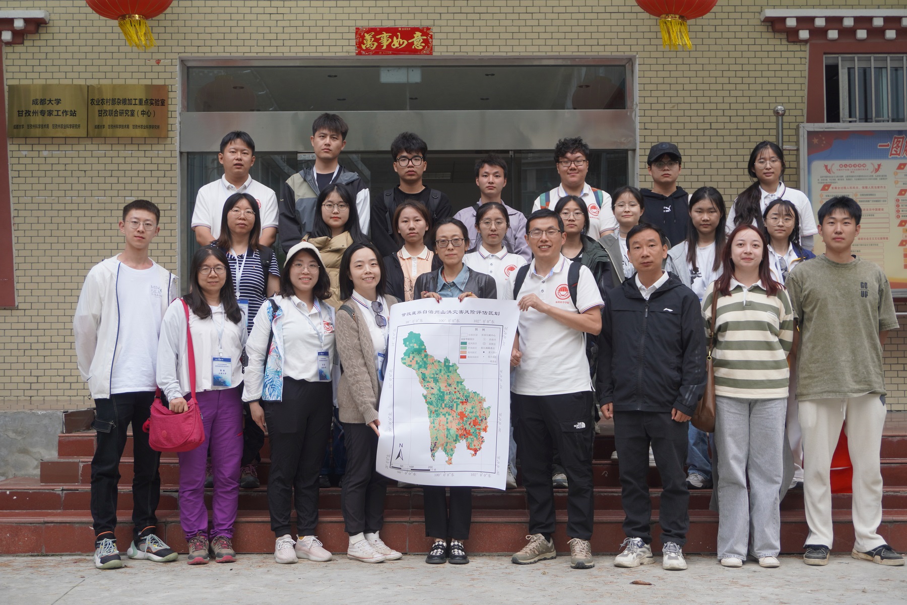 近日,学校联合重庆师范大学、四川师范大学、西华师范大学、陕西师范大学、云南大学、福建师范大学等11所高校89名师生组成的2023年西南地区高校地理学野外联合实习团队在康定为甘孜藏族自治州农业科学研究所赠送了《甘孜藏族自治州山洪灾害风险等级评估区划图》。团队成员聚焦西南山区自然灾害频发问题,发挥自身专业特长,通过前期调研、实地观测、专家指导、综合研讨,历时近半个月完成制作了山洪灾害风险等级图。实习团队深入川西高原调研与服务,拓展实习内容,提升专业能力,传播科学精神,助力西南民族地区发展和乡村振兴。